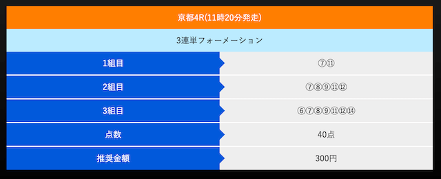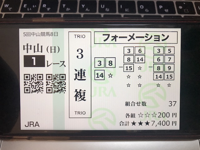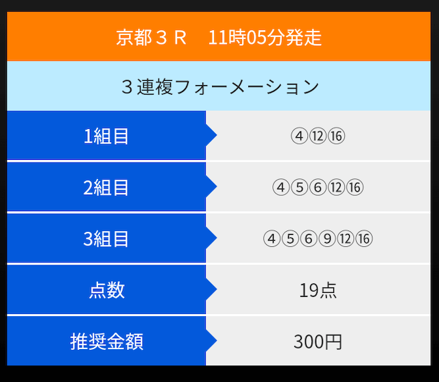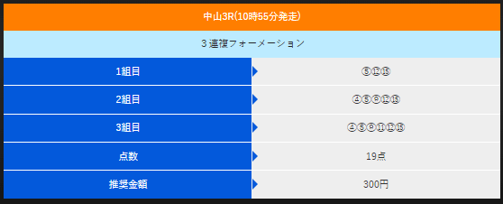 推奨投資金額は1点300円なので、合計5,700円での勝負。