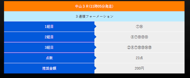 券種は1レース目と同様に三連複フォーメーションで19点。