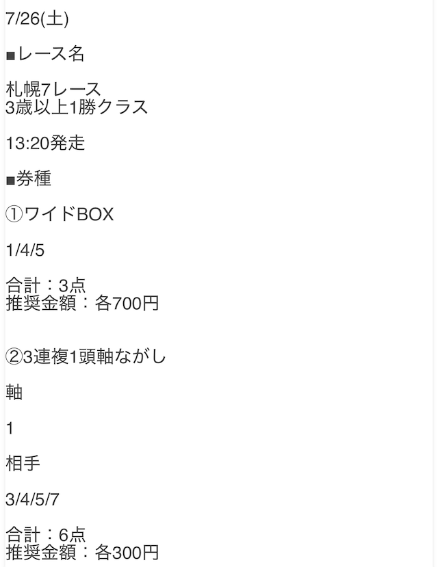 - 2025/7/26札幌7R [📷]◯9,200円