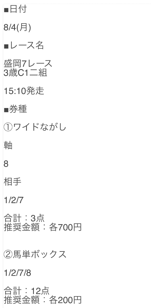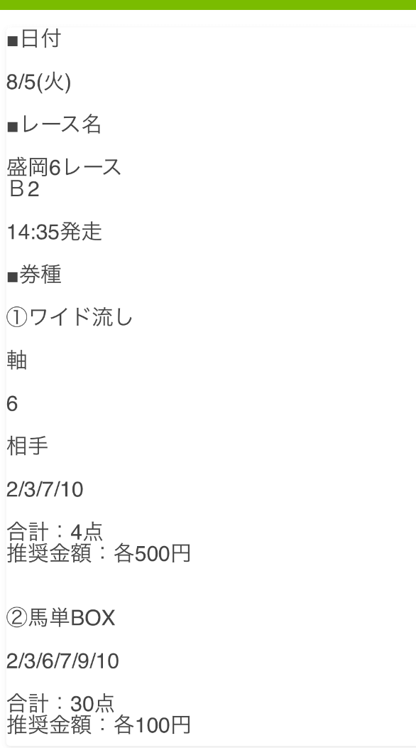 - 2025/8/5盛岡6R [📷]◯2,850円