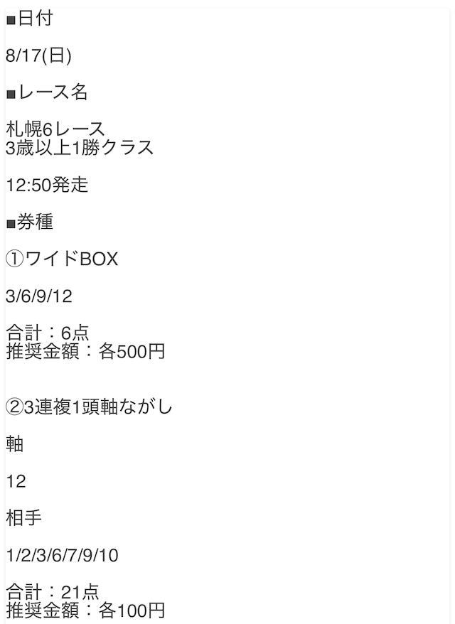 - 2025/8/17札幌6R [📷]✕16,300円