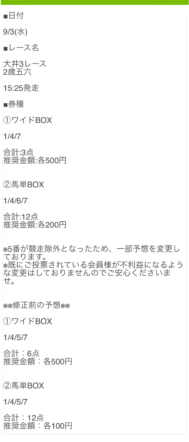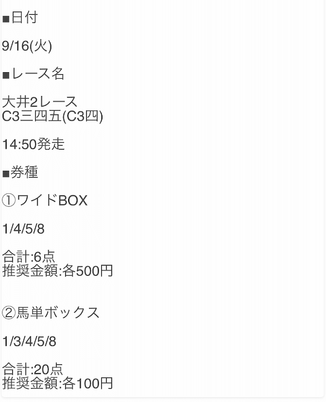 - 2025/9/16大井2R [📷]◯3,200円