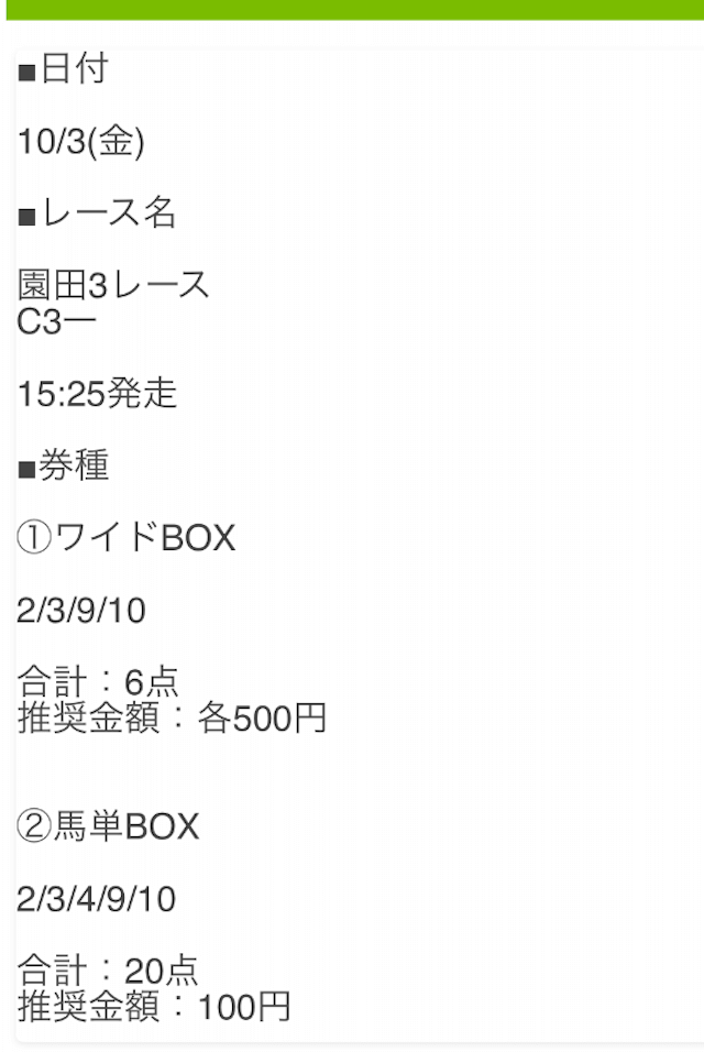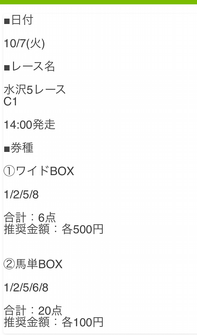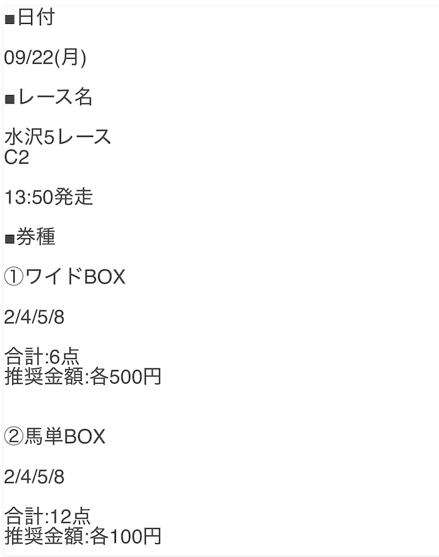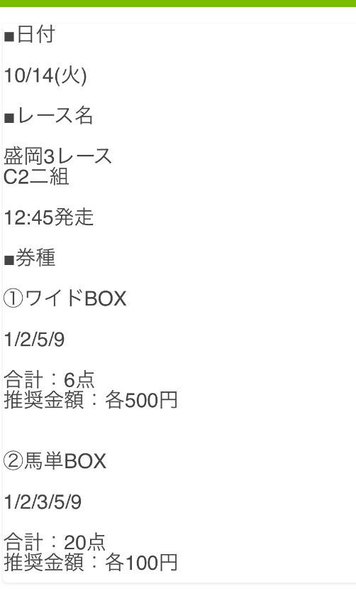 投資金額は1点500円の合計10,000円での勝負となります。