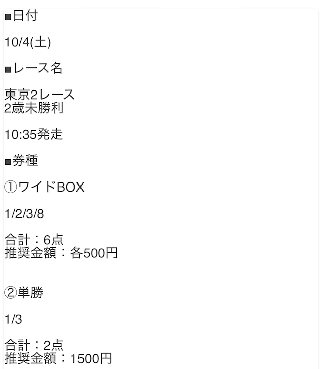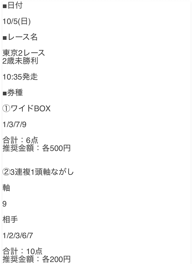 - 2025/10/4東京2R [📷]◯6,300円