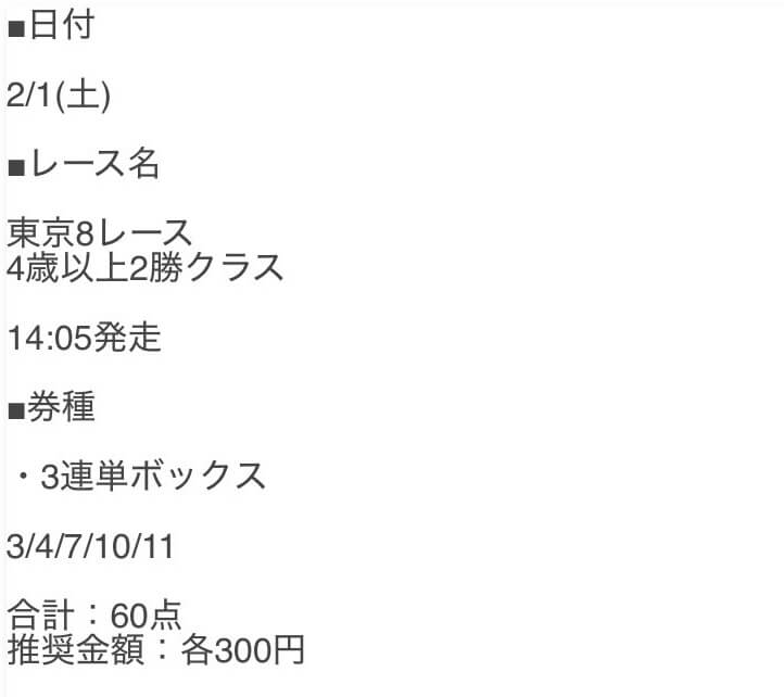 | 2025/02/01 | 東京8R[📷] | ⭕️ | 108,240円 |
