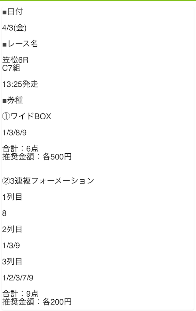 ・有料予想を3回購入した結果