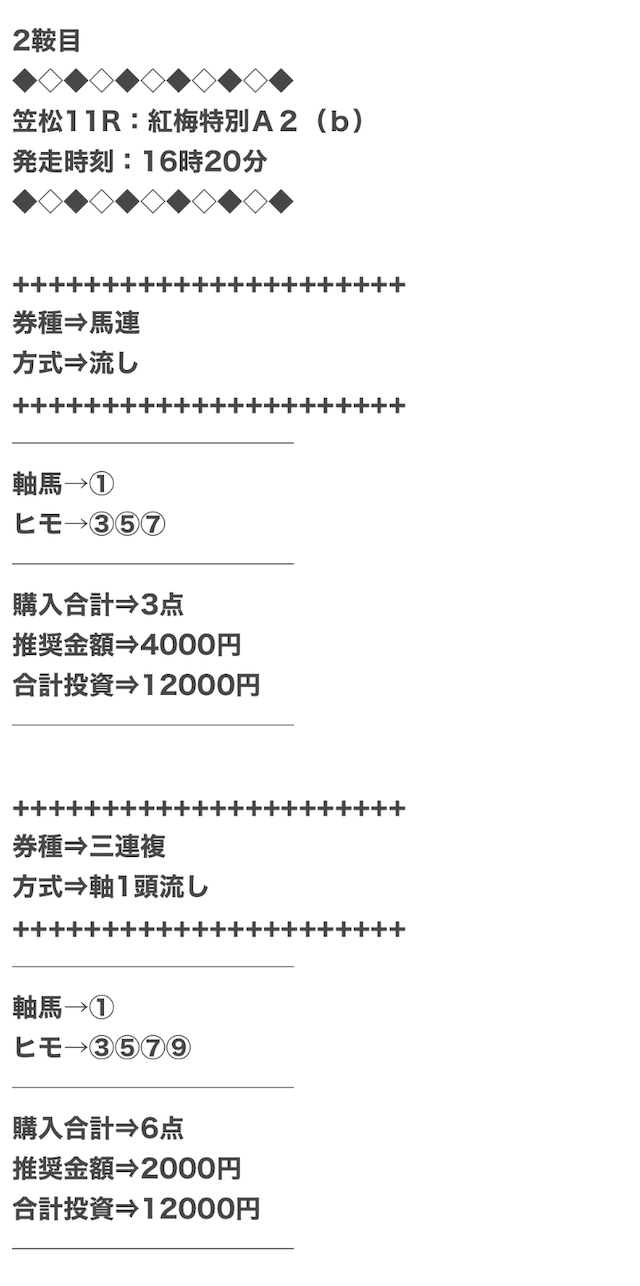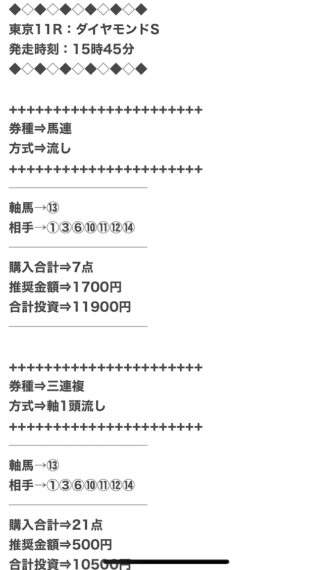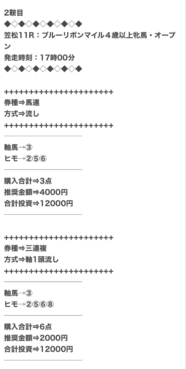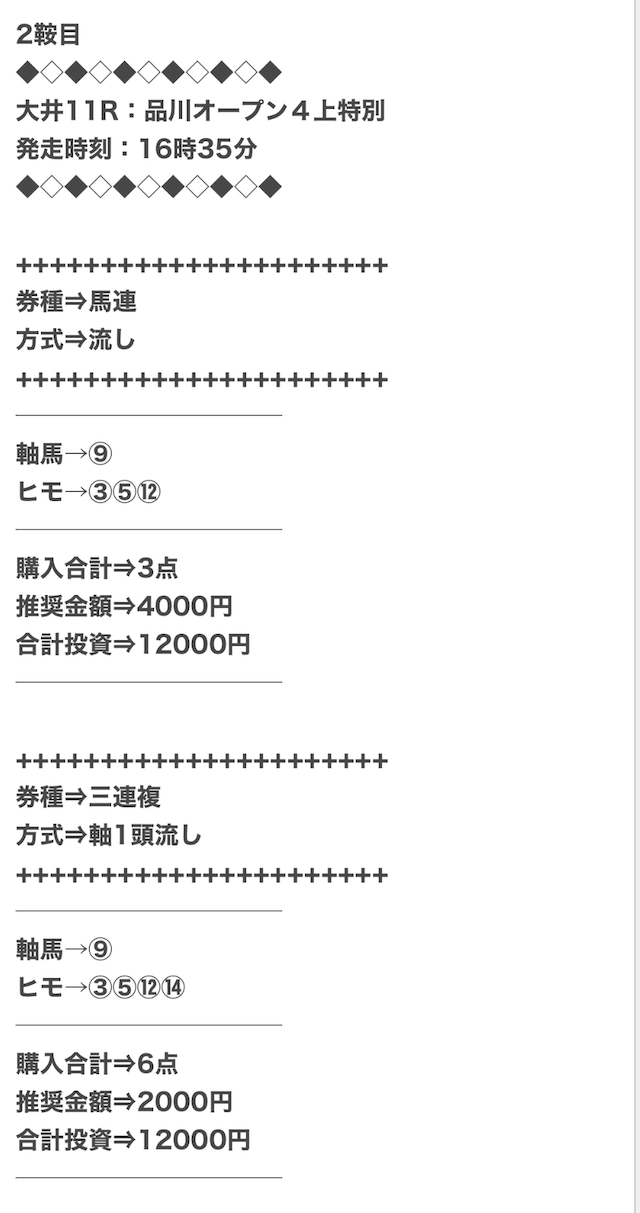 ただ、馬連・三連複以外の券種は公開されません。