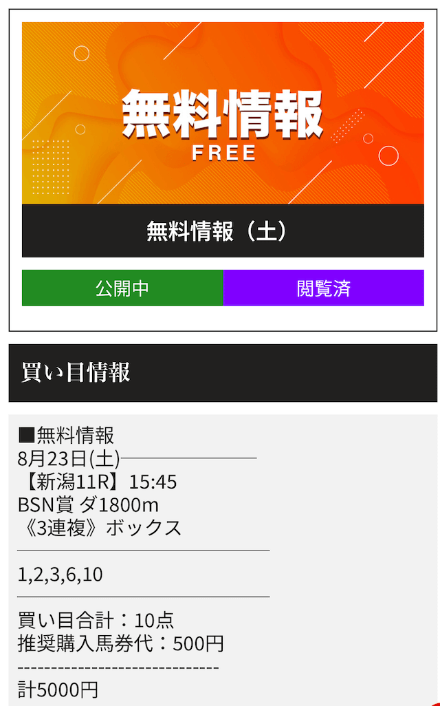 では次に、天才穴馬党の無料予想詳細をご覧ください。