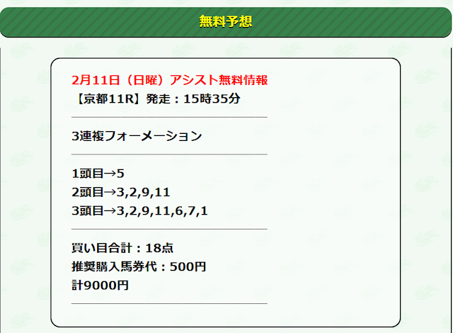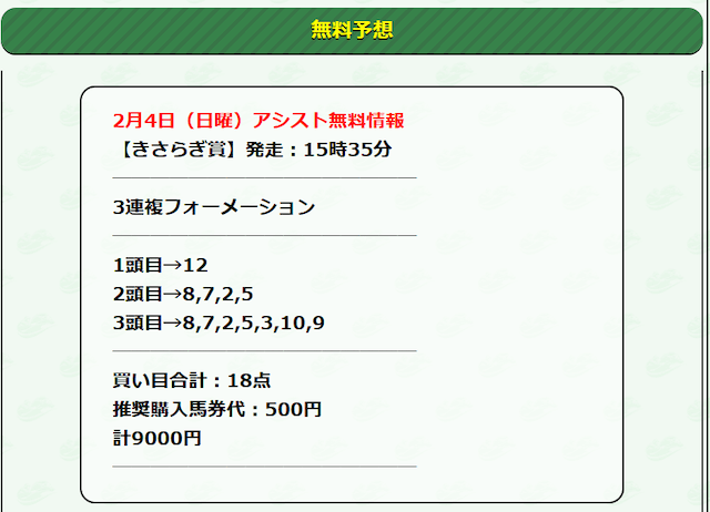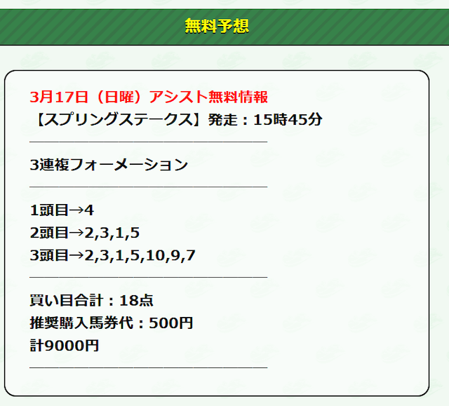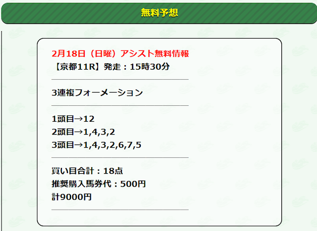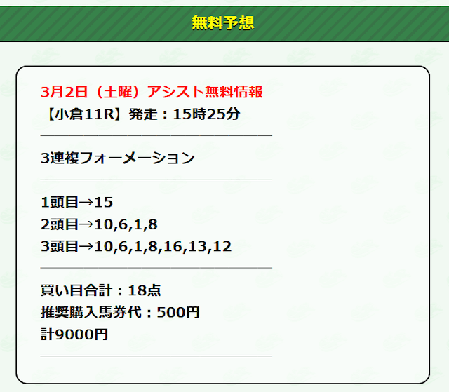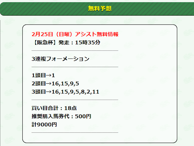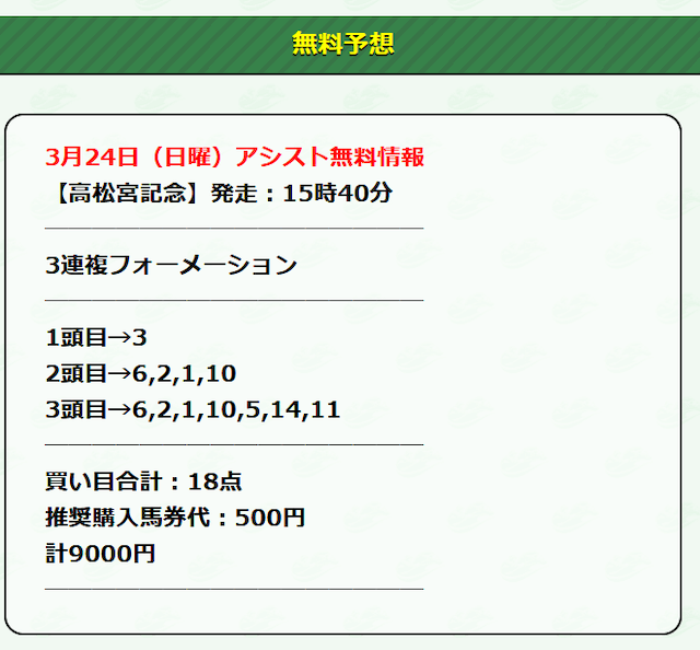 それでは早速、アシストの公開する無料予想に参加していきたいと思います!