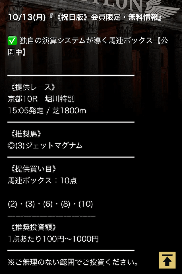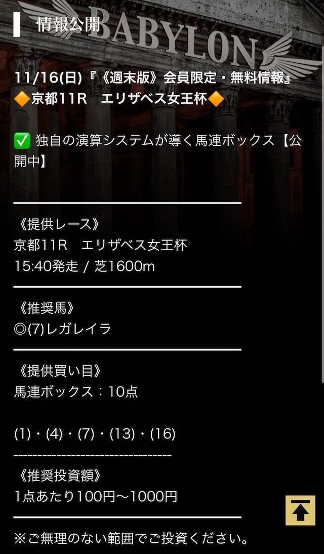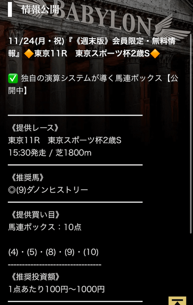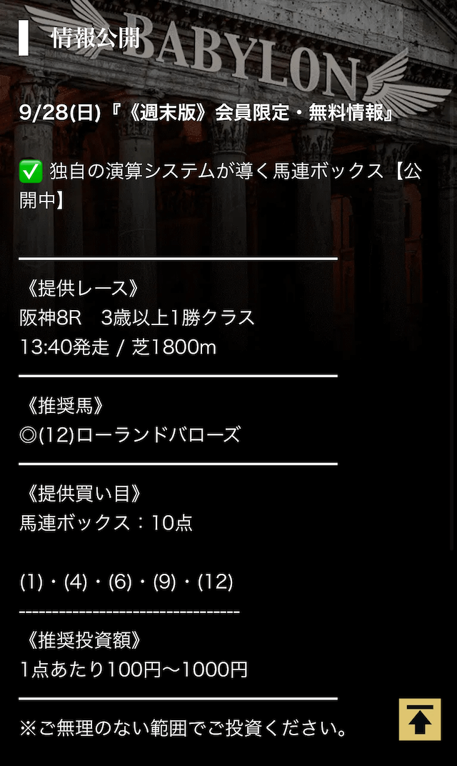 バビロンは、競馬を投資と考えている競馬予想サイト。