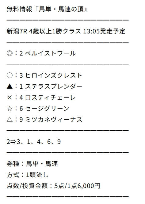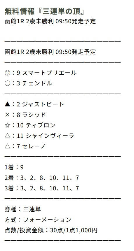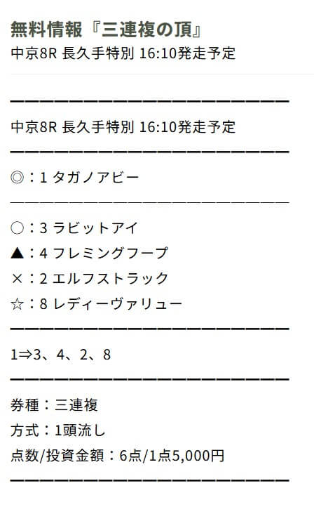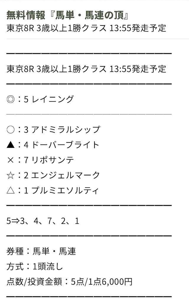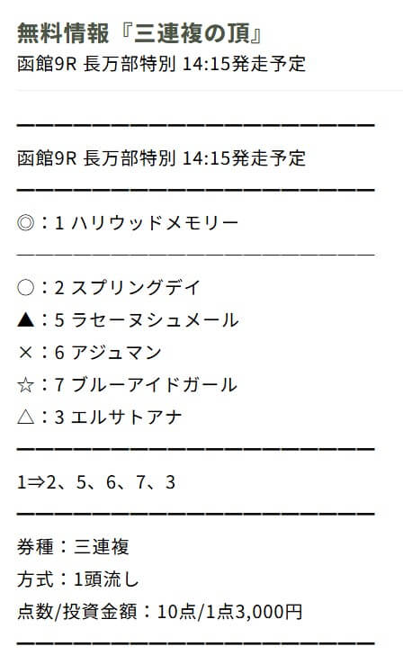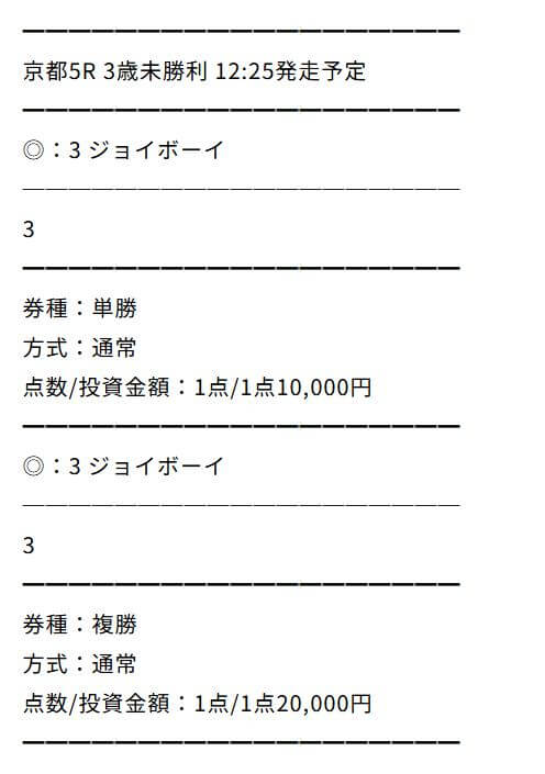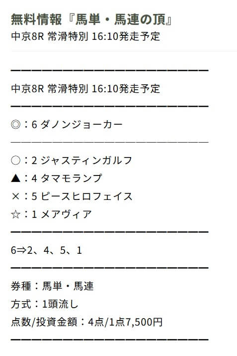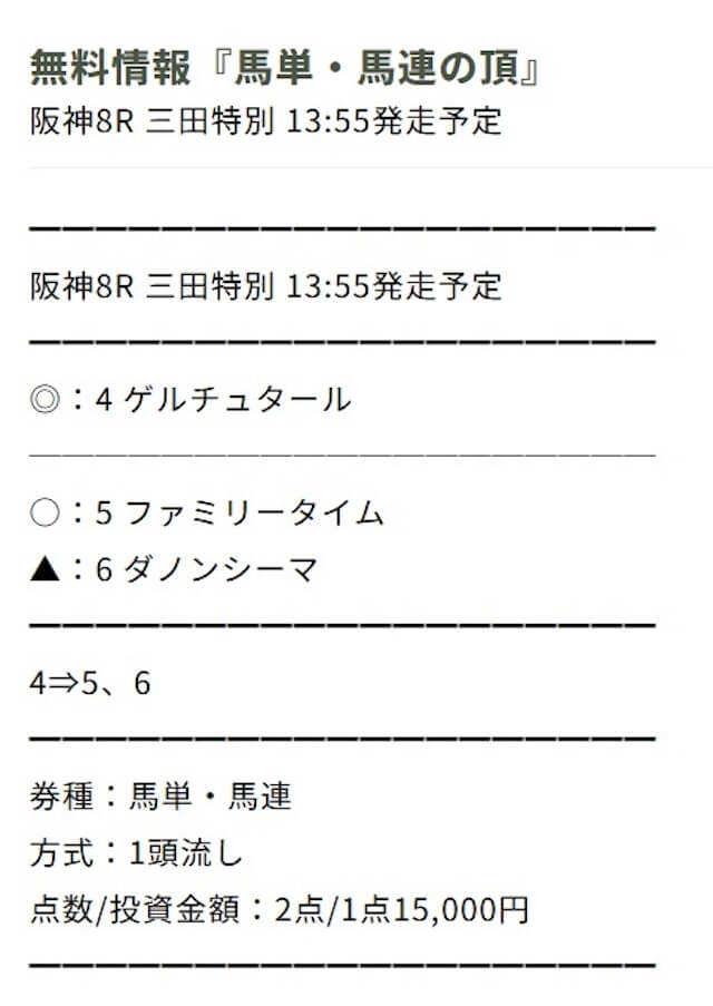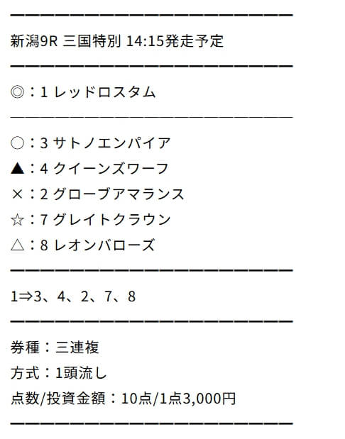 実績見て気になっていた特別限定有料情報、利用しましたが大満足の結果でした。