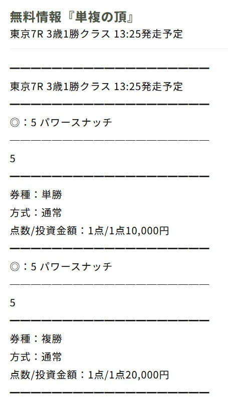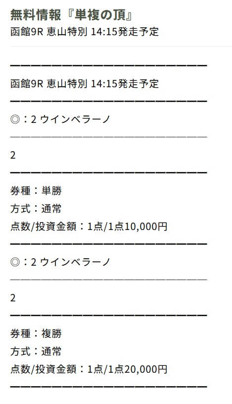 VIP会員様専用情報ってやつがかなり良かった。情報料はぱっと見高かったけど最終的な結果からしたらむしろ安いぐらい。勝てるし稼げるから情報料が高いんだな。
