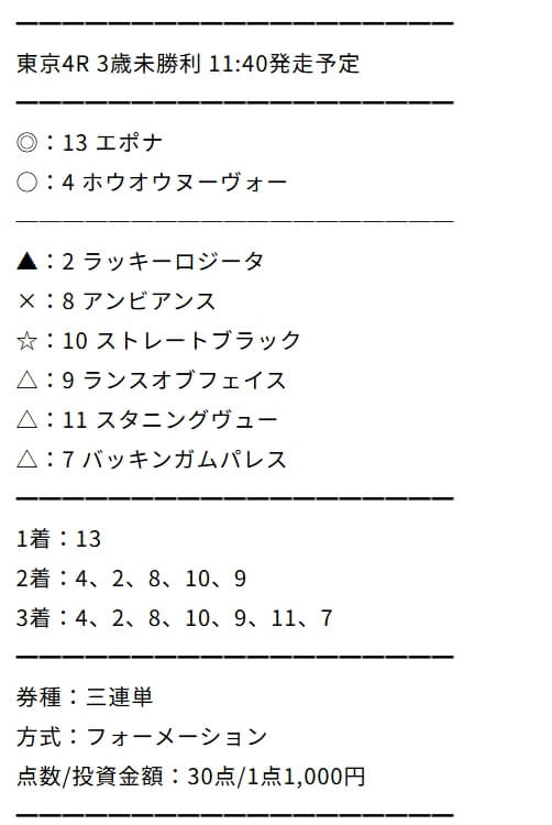 案内されてる情報も良いけど、ここ、全員に出してる週末情報の的中率えぐいな