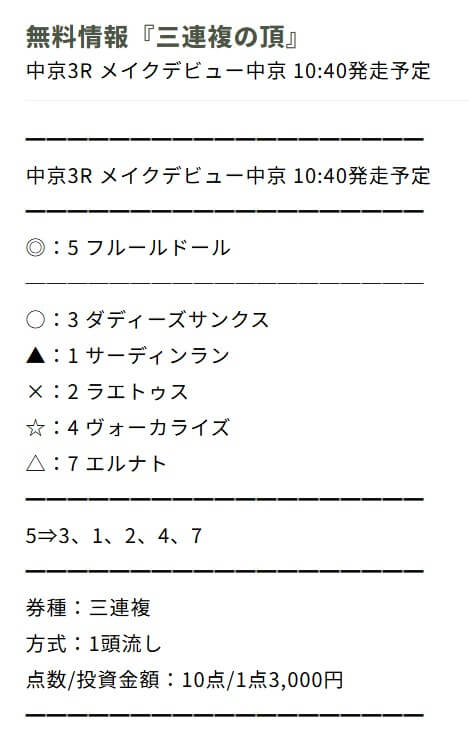 無料は今回はずれましたが中山9レースが39万3千円の高額的中です。