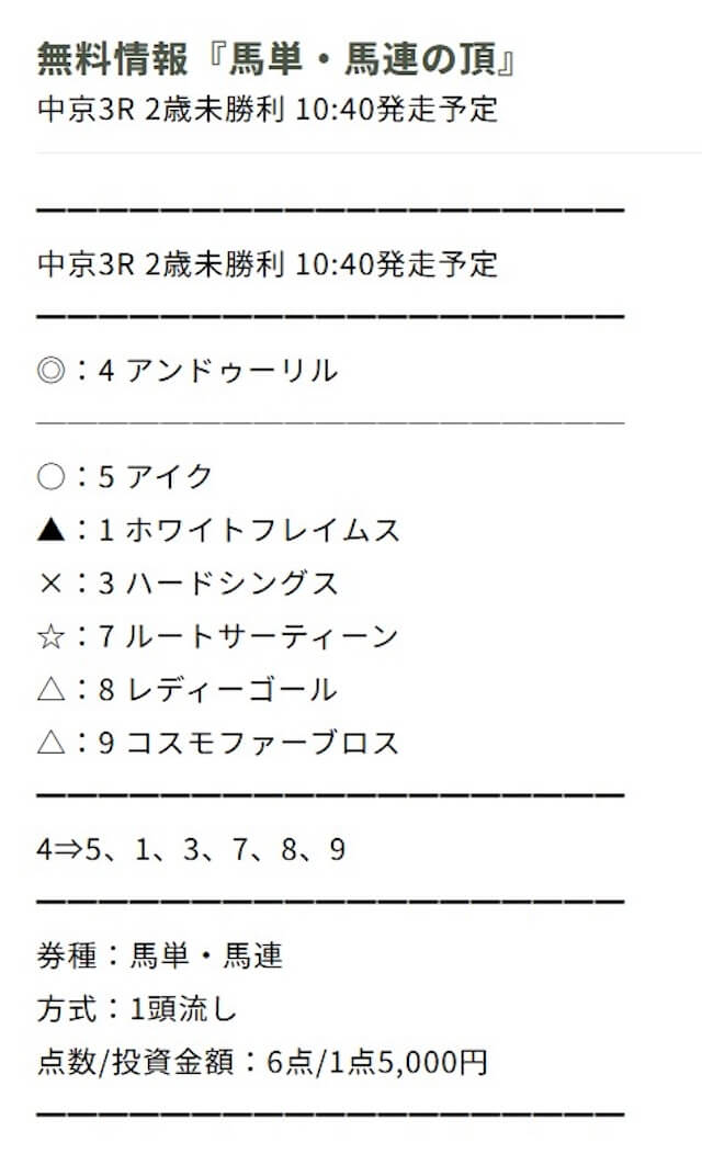 馬争の頂の無料予想が本当に当たるのか、軍資金5万円を使って検証。