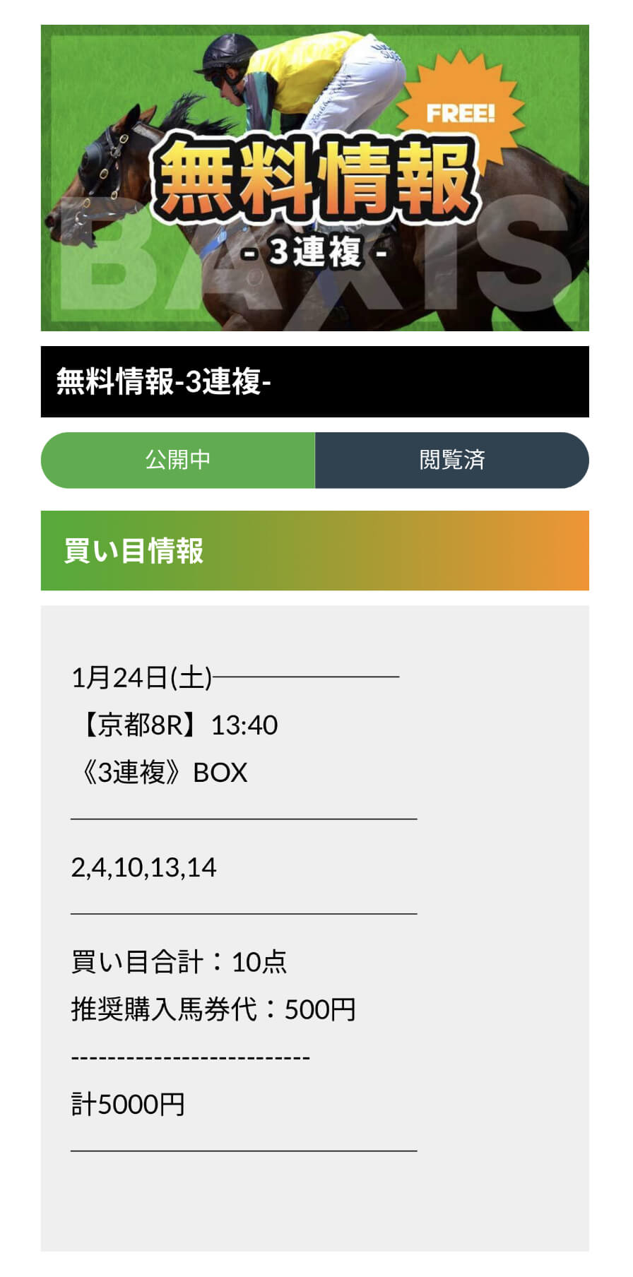 無料予想で軍資金ができた方は、ぜひ有料予想にもチャレンジしてみてください。