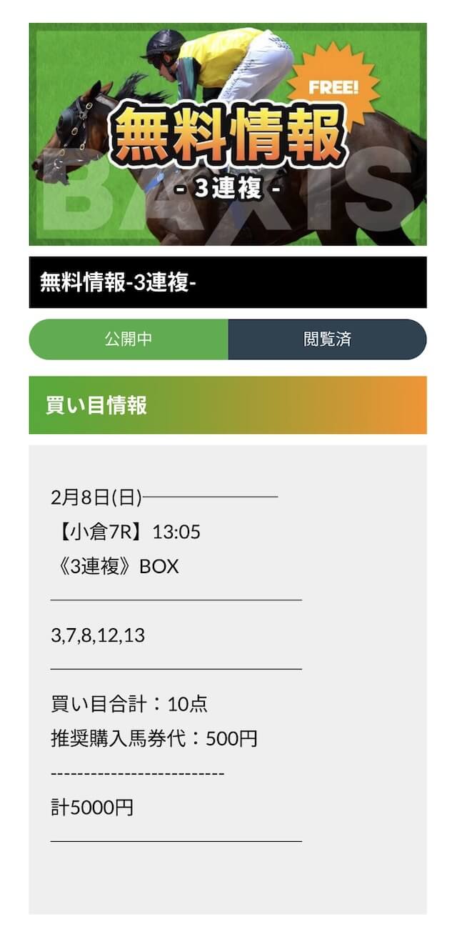 バクシスは入手した情報を何度も精査・分析することで、常に精度が高い予想を公開しているサイトです。