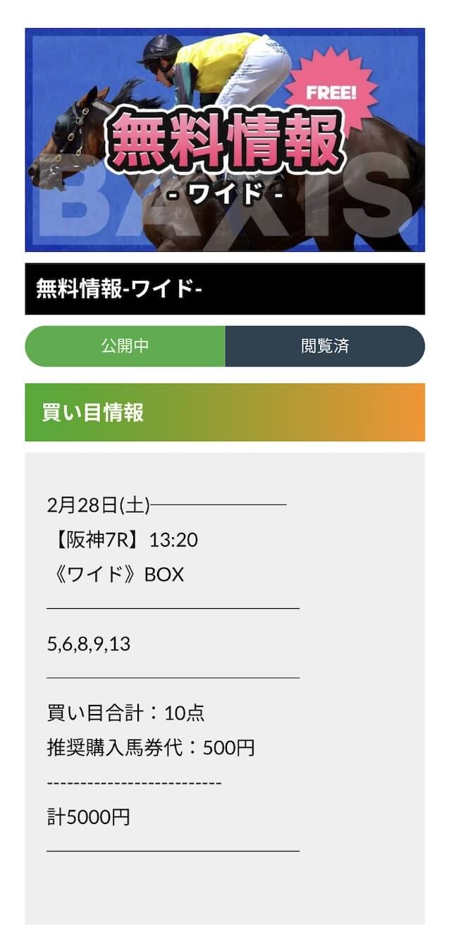 まじで無料予想の質だけで言えばバクシスがナンバーワンだわ。