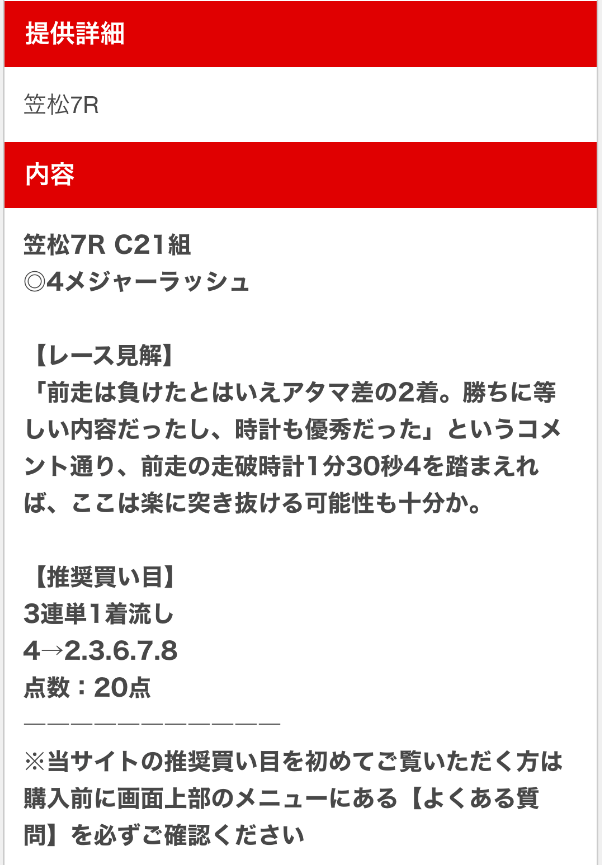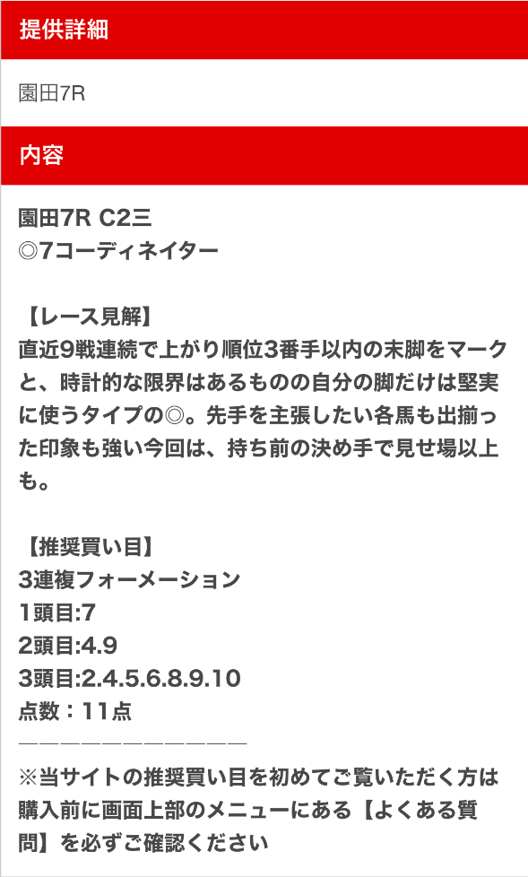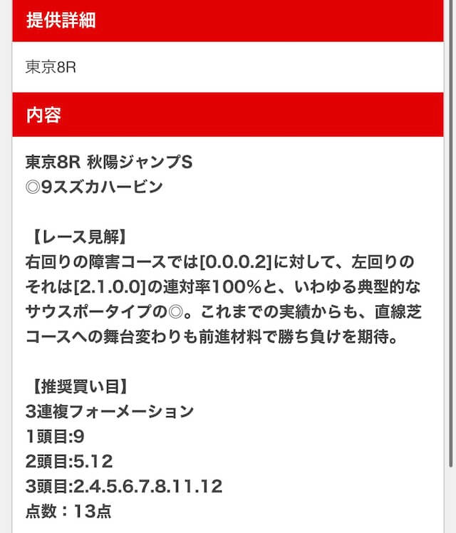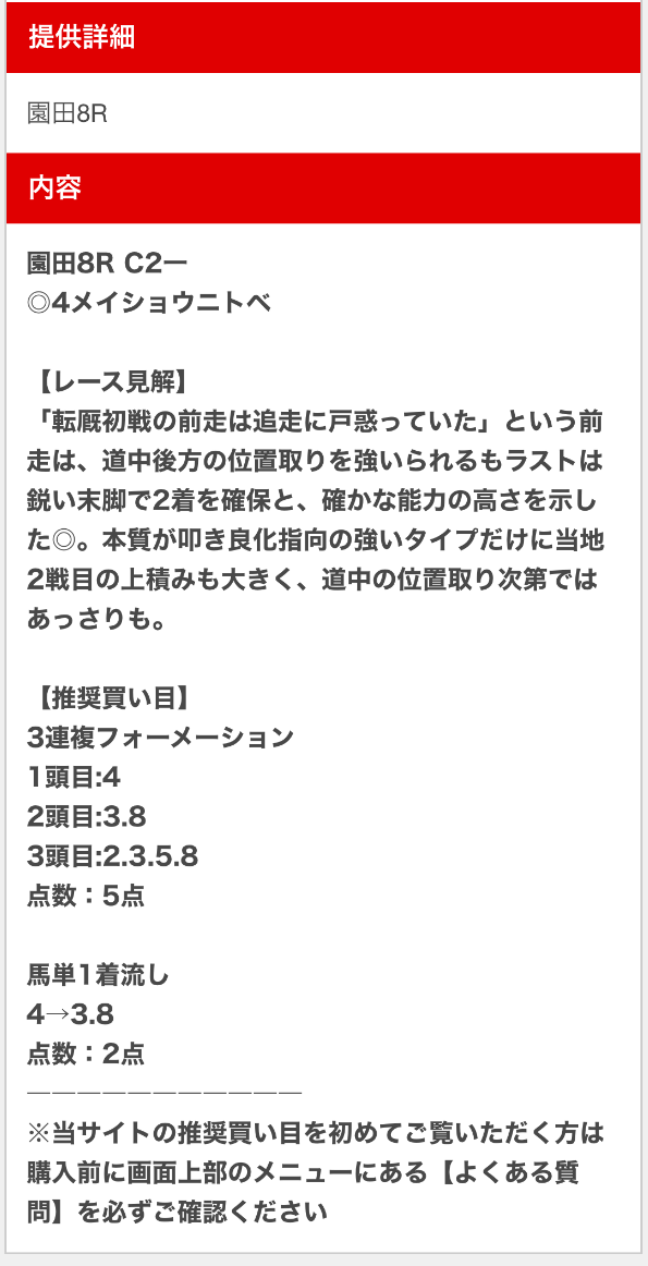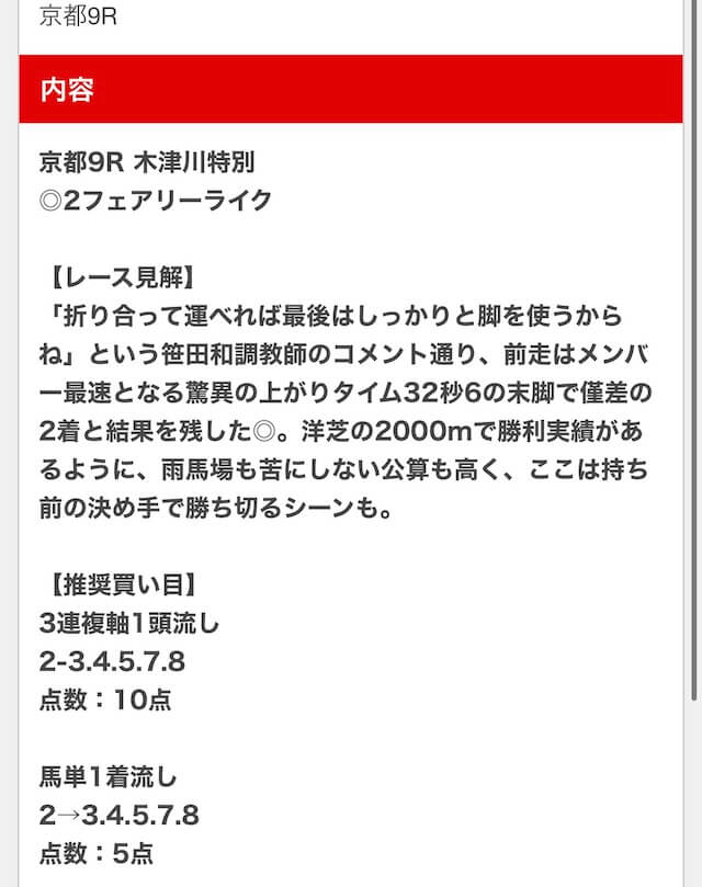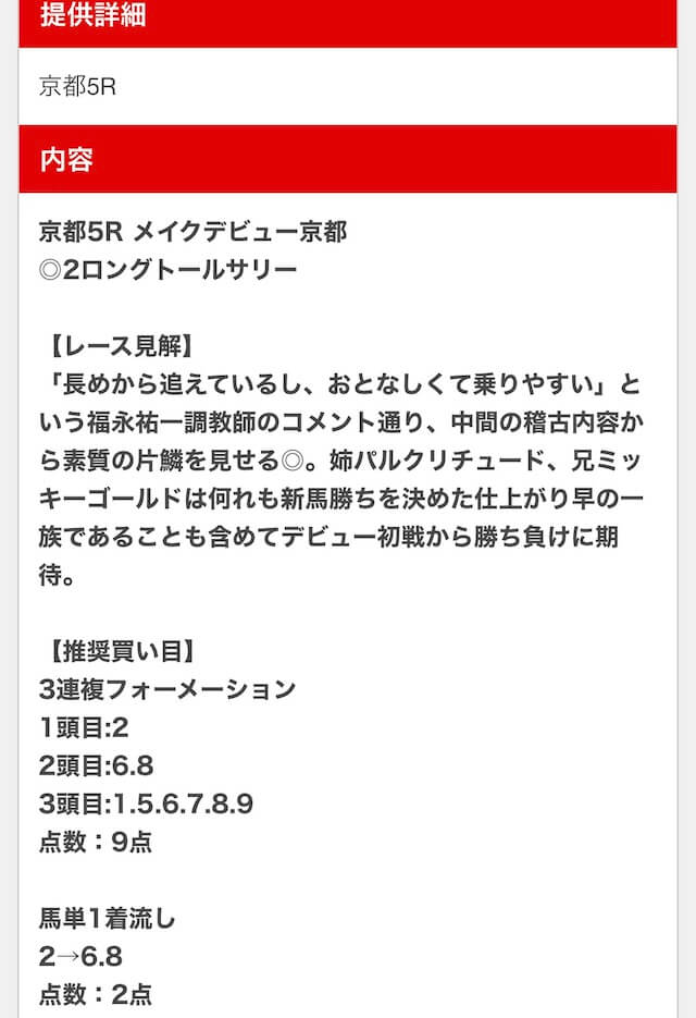 無料予想でレース見解まで書かれてて納得できる予想だから安心して使える