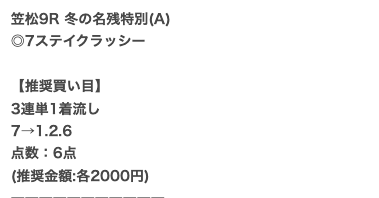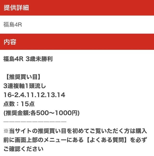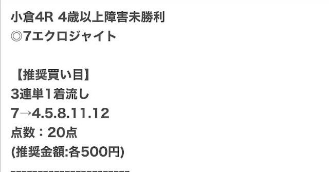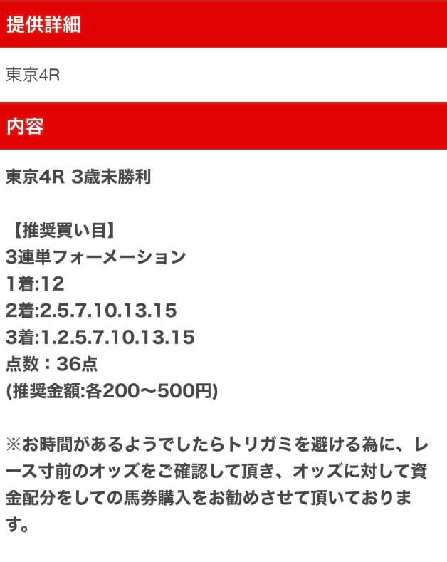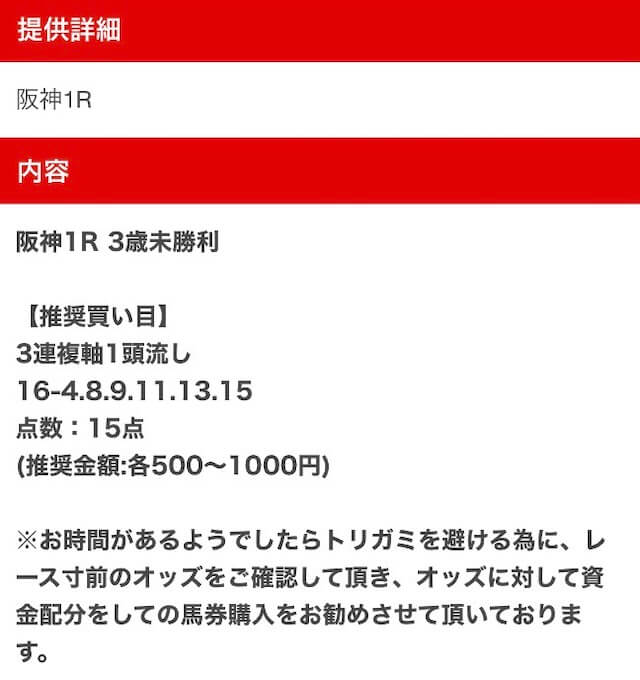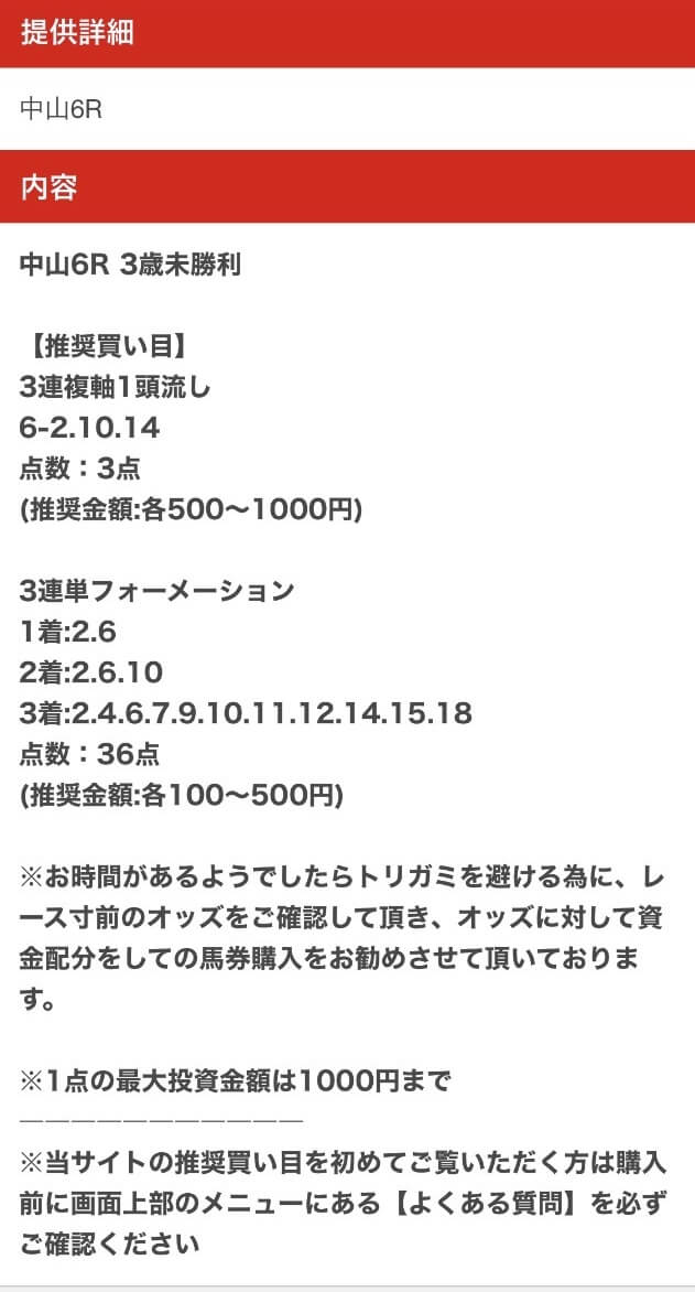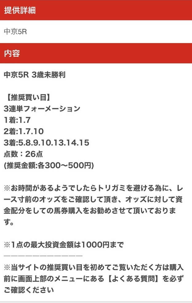 以下は実際に公開された買い目になります。