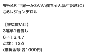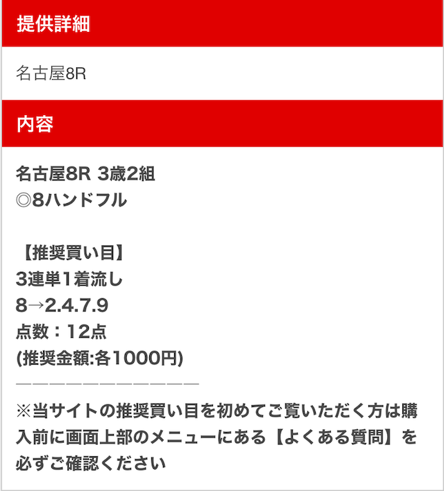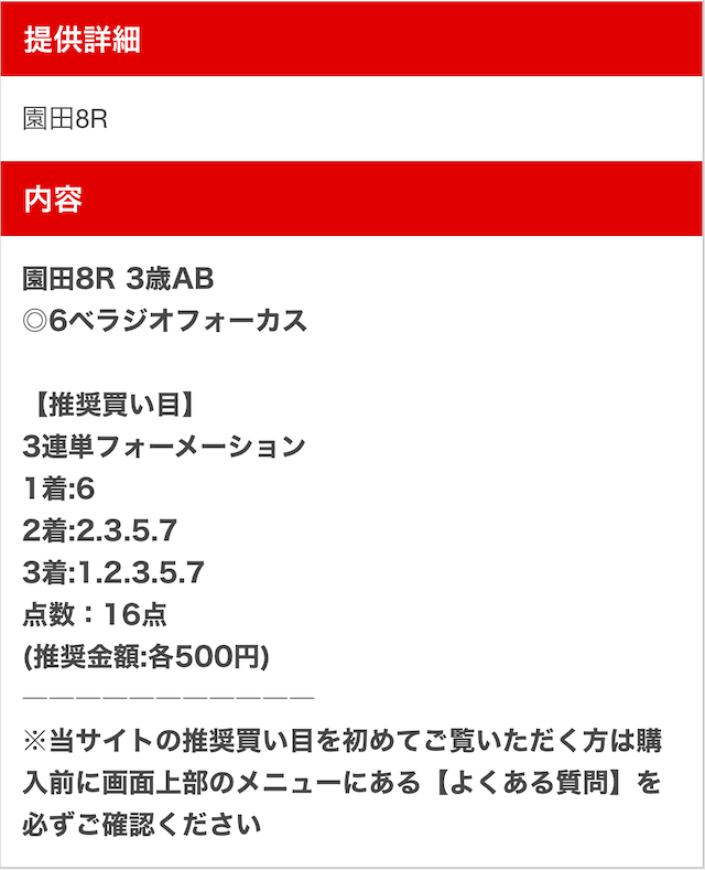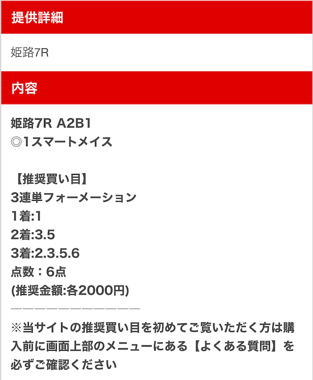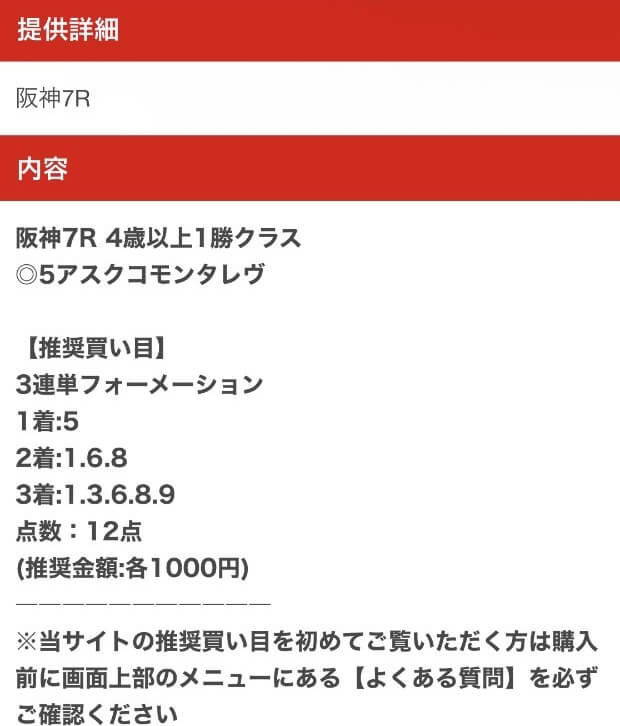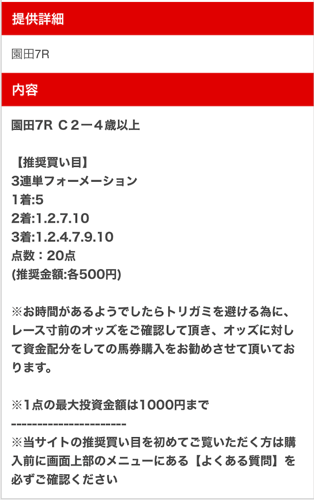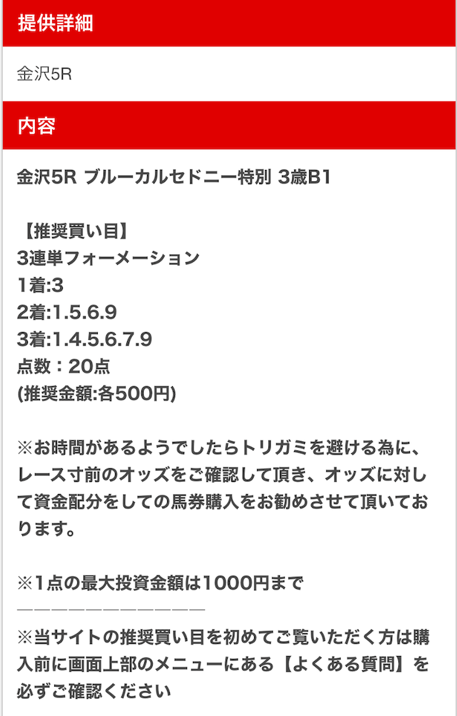 以下は実際に公開された買い目になります。