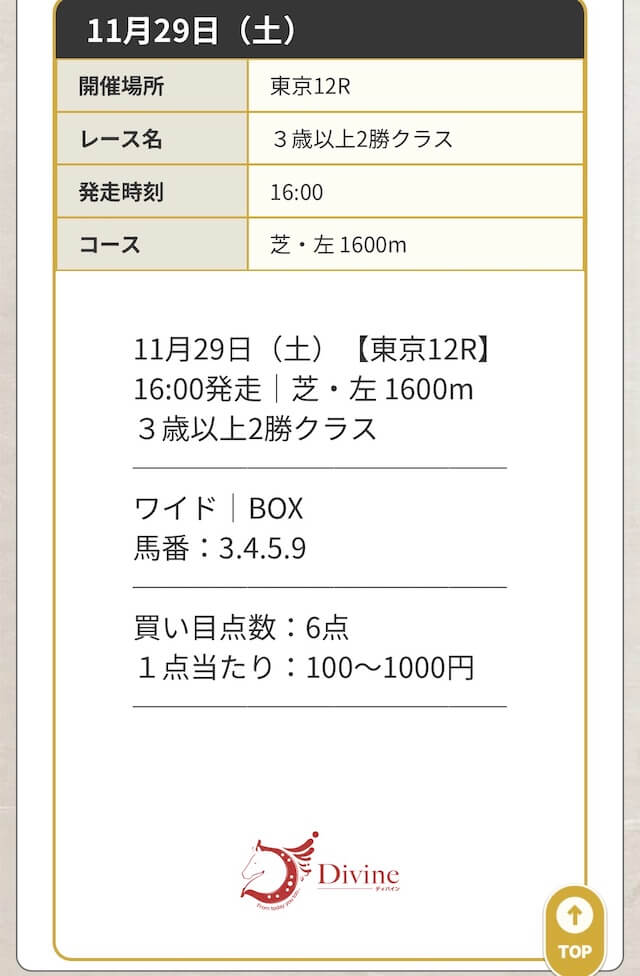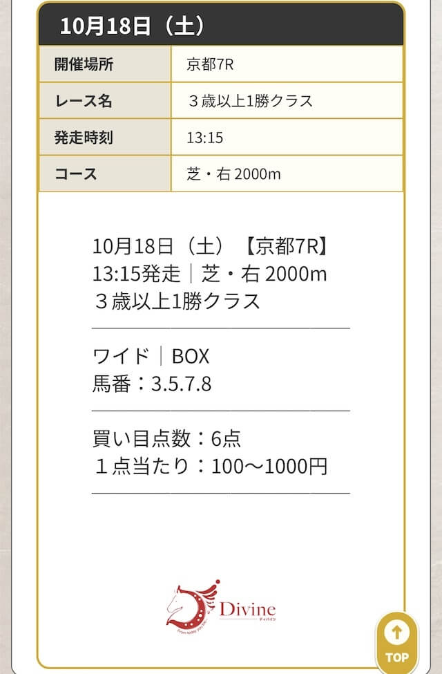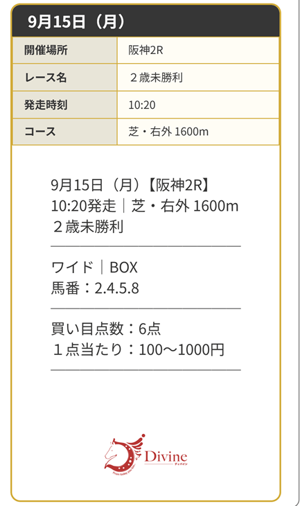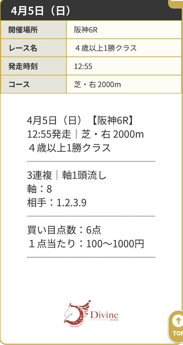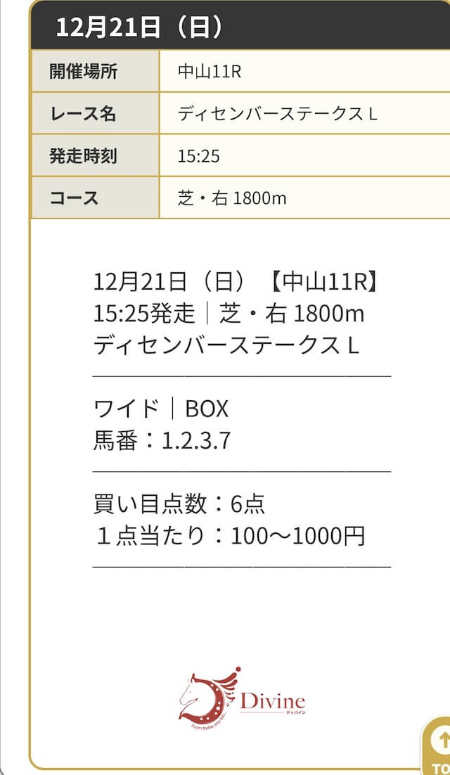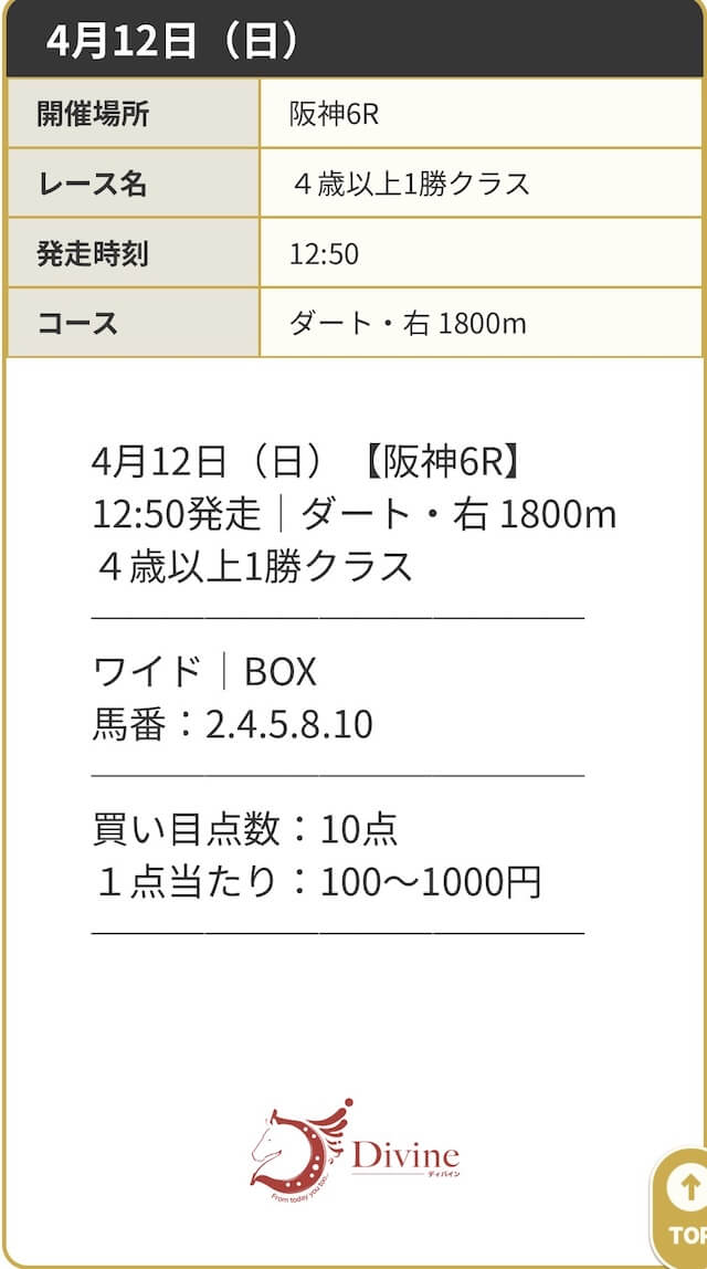 引き続き無料予想で勝負し、ディバインの実力を確かめていきます。