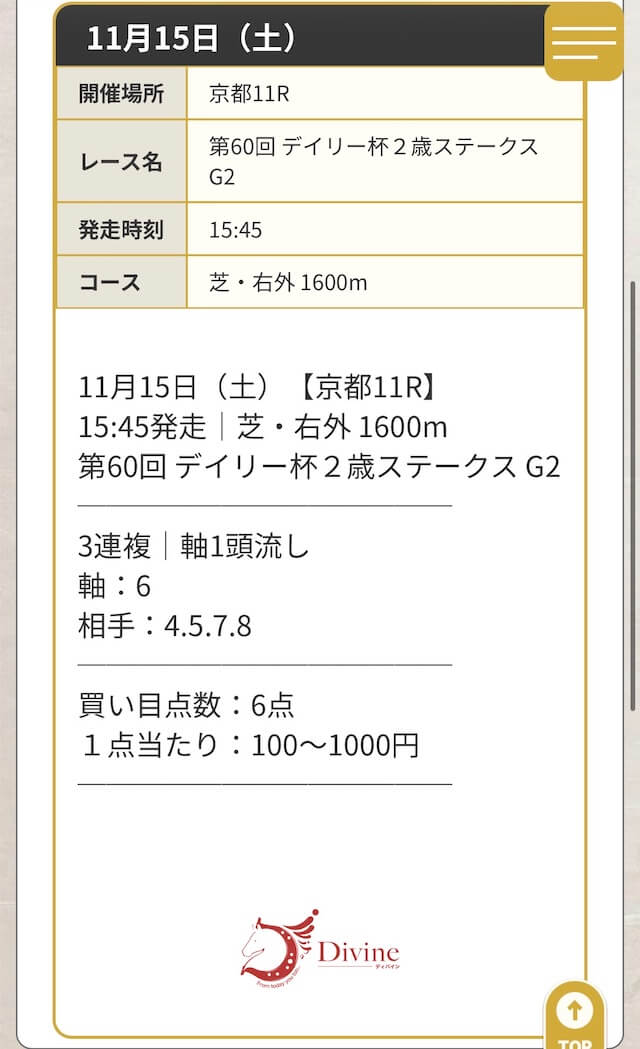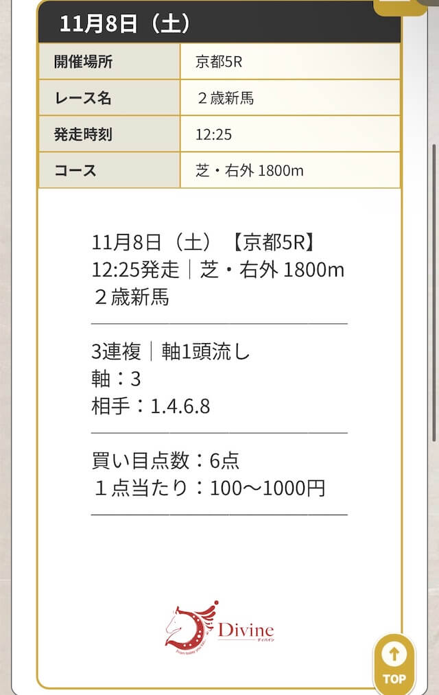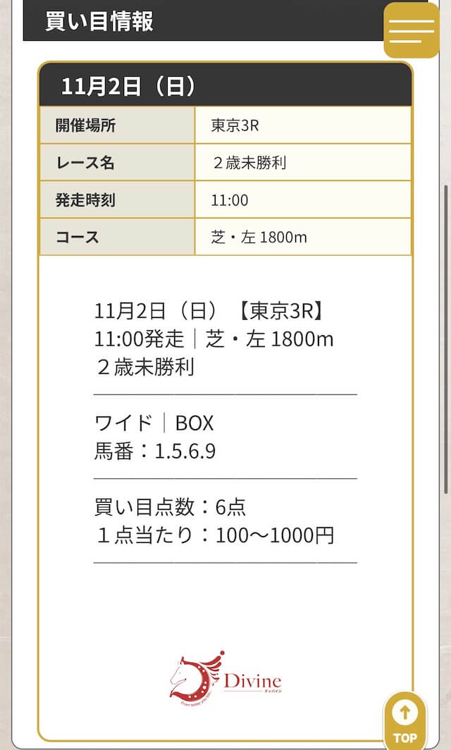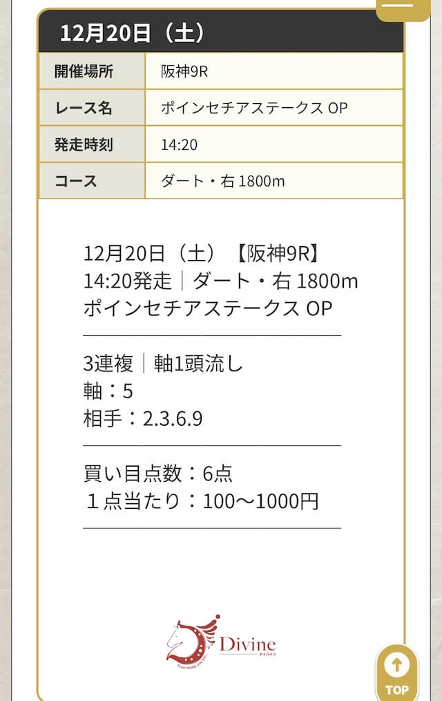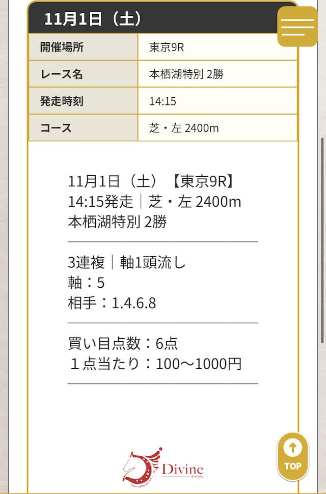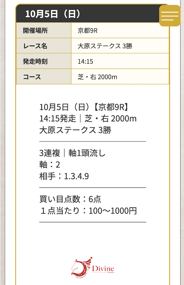 ディバインはでかい一撃を狙うというより、コスパ良くプラスを目指すスタンスの予想サイト。