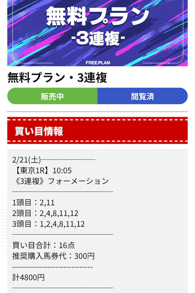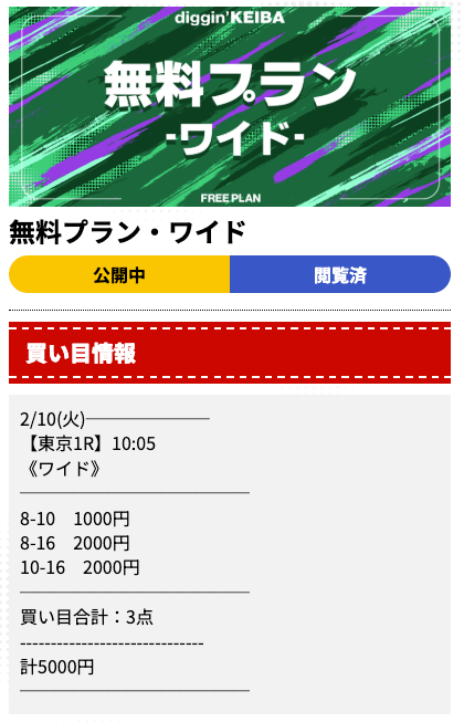 時折、大幅値下げや名前登録で1000pt付与、等のキャンペーンが開催されているので、それらを活用しぜひ一度有料予想の爆発力を体感してみてください。