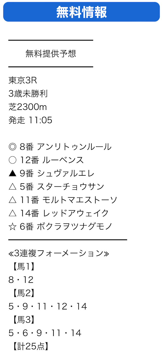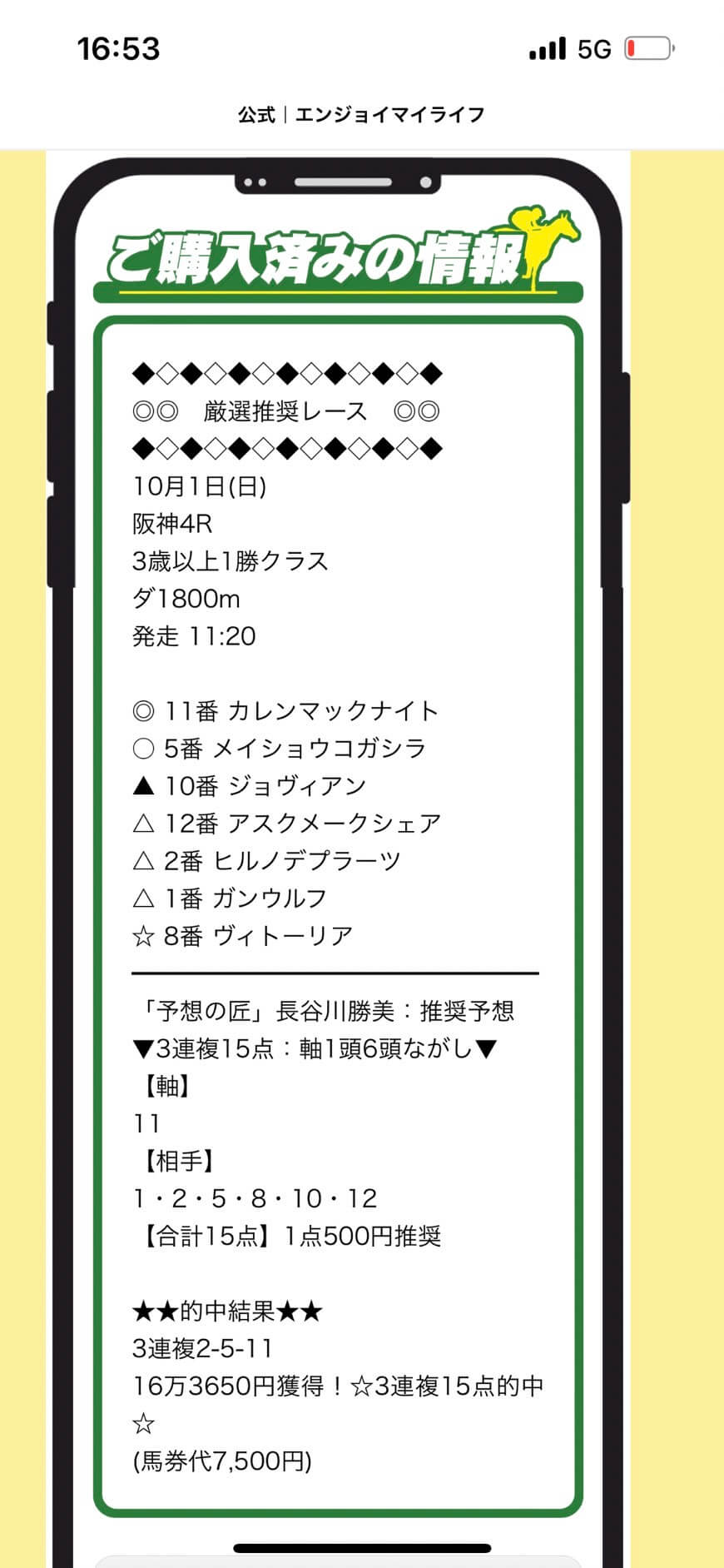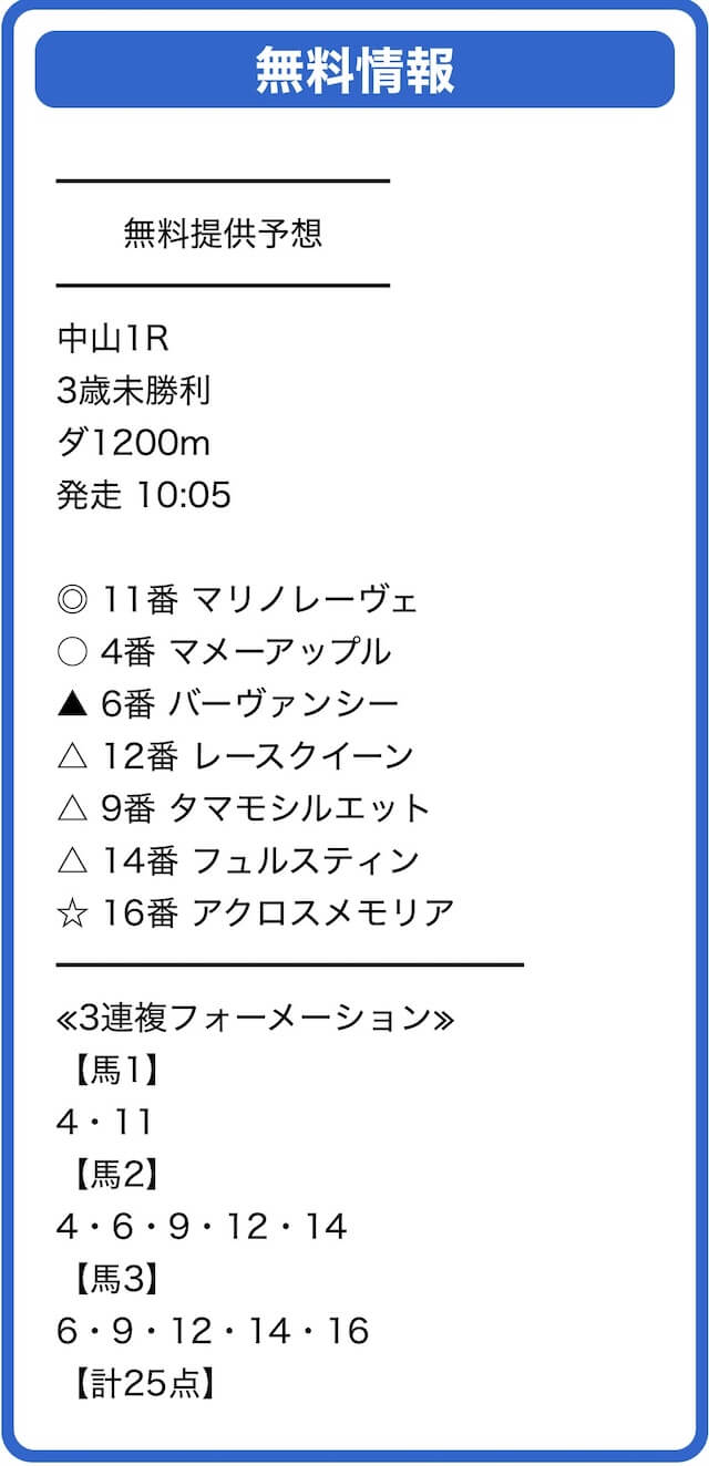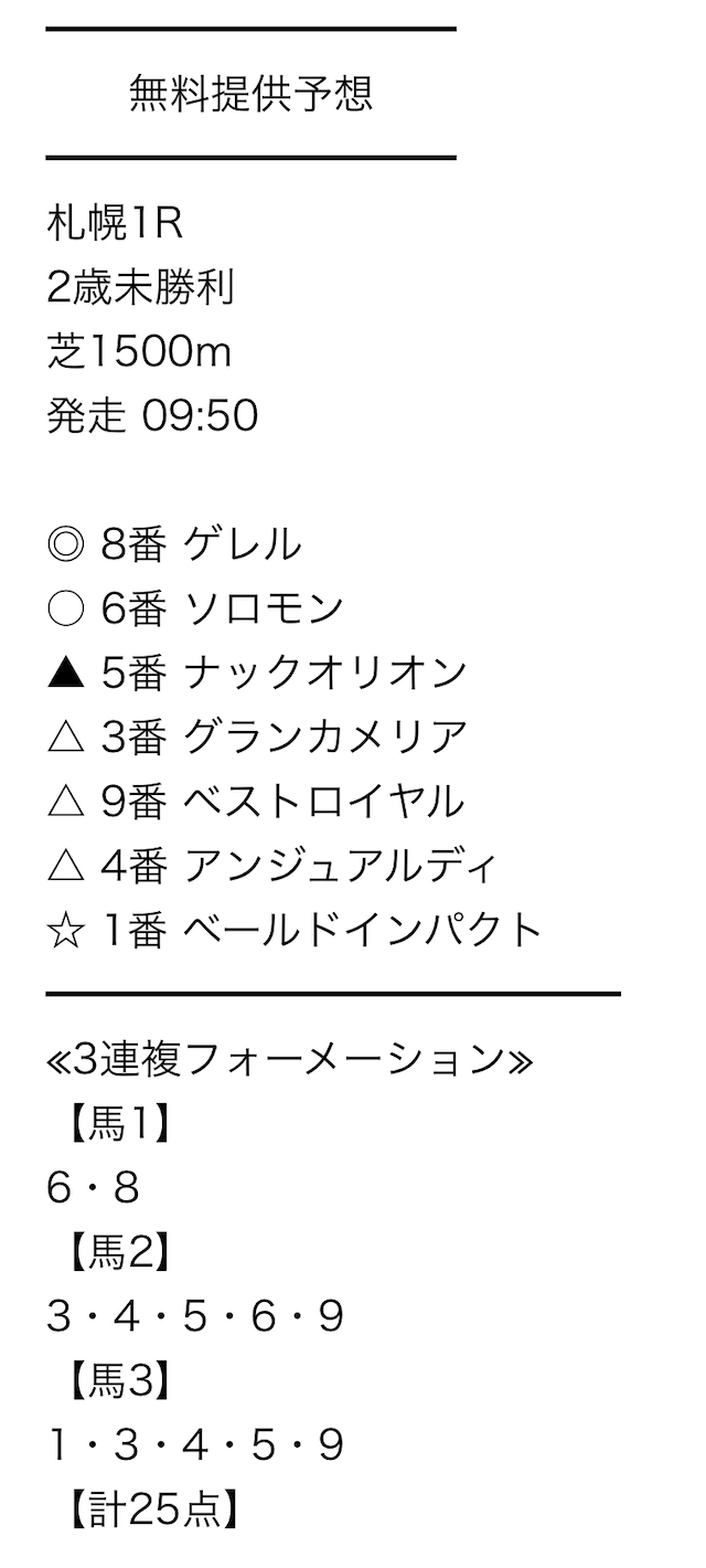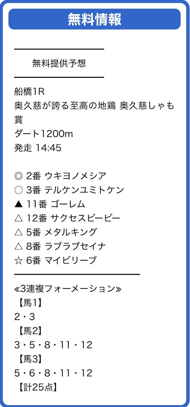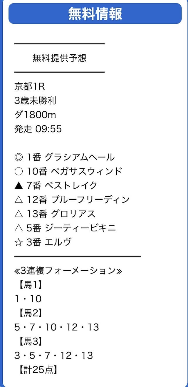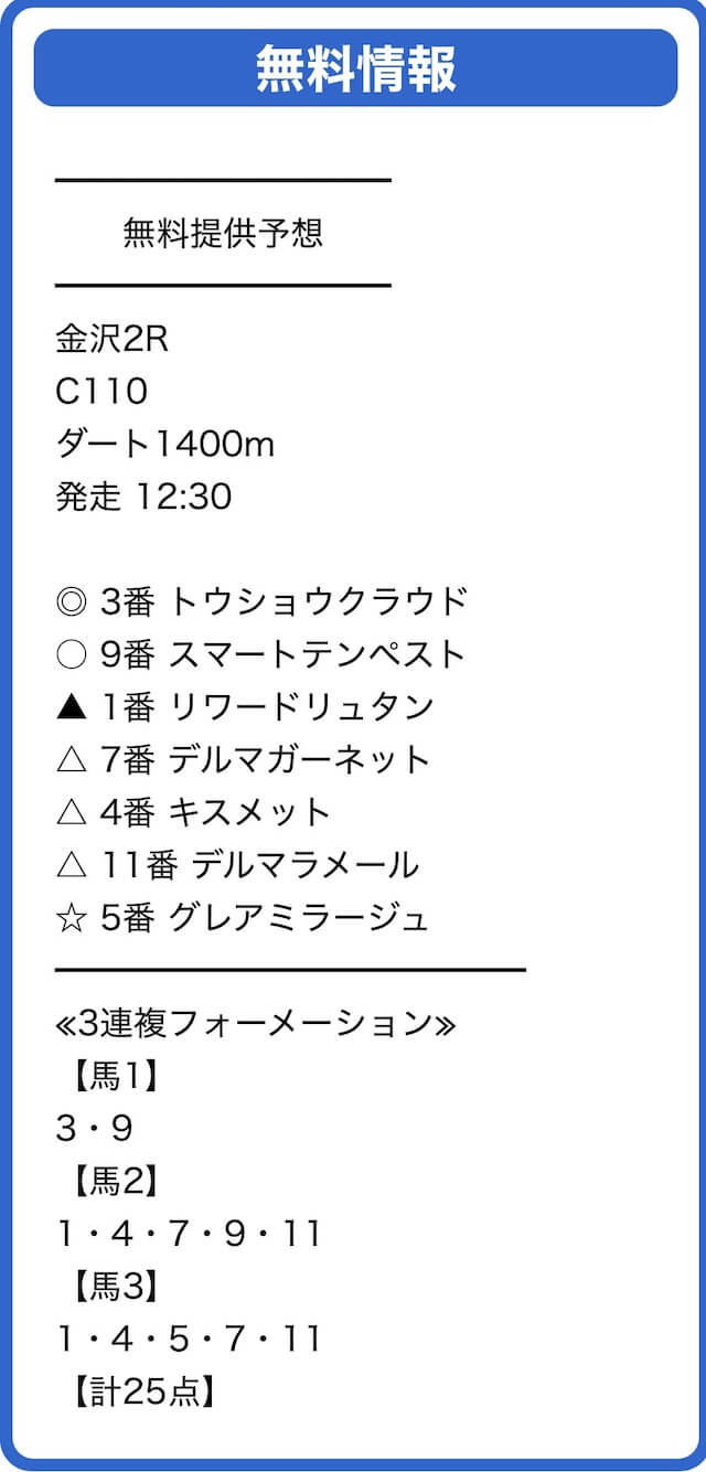 先週提供された2レースも的中したから実力もちゃんとあるね。