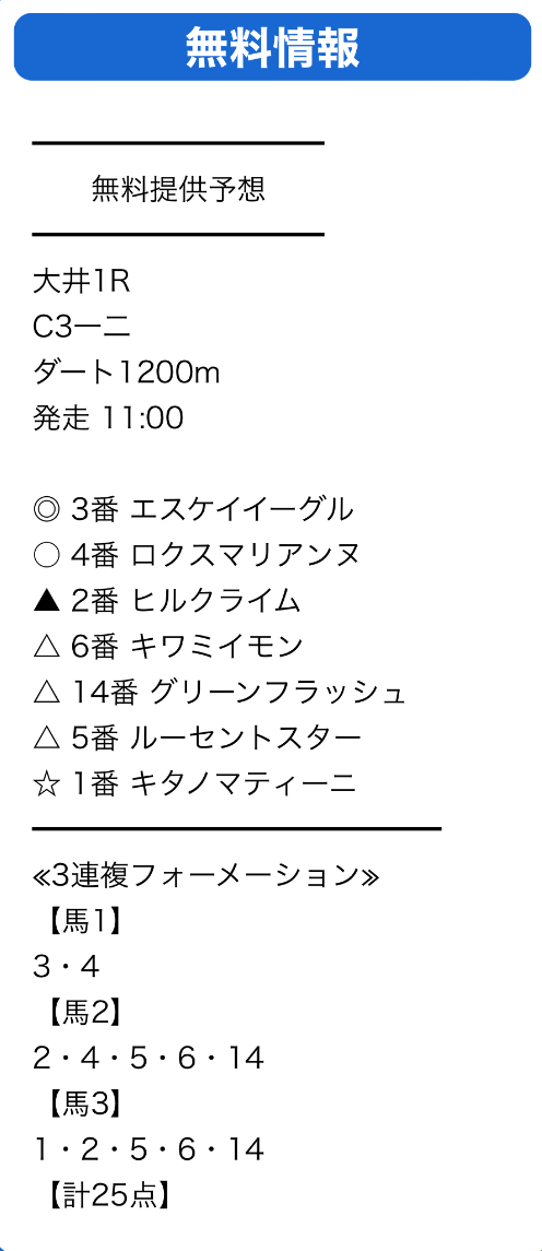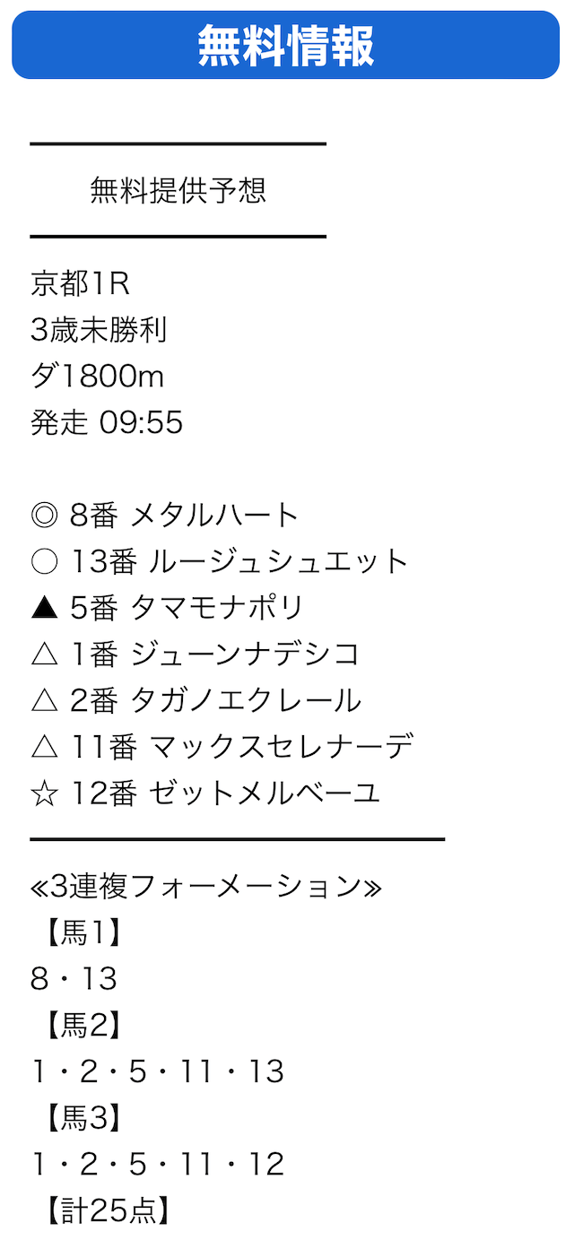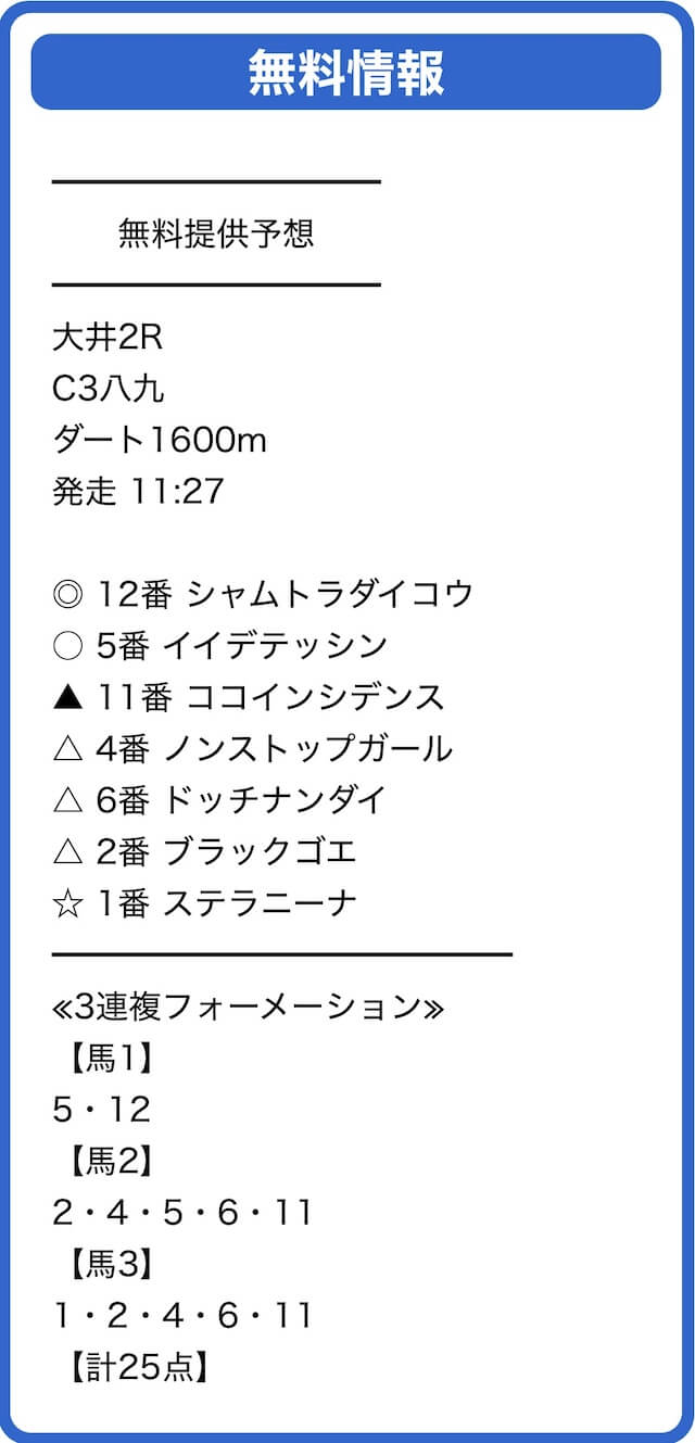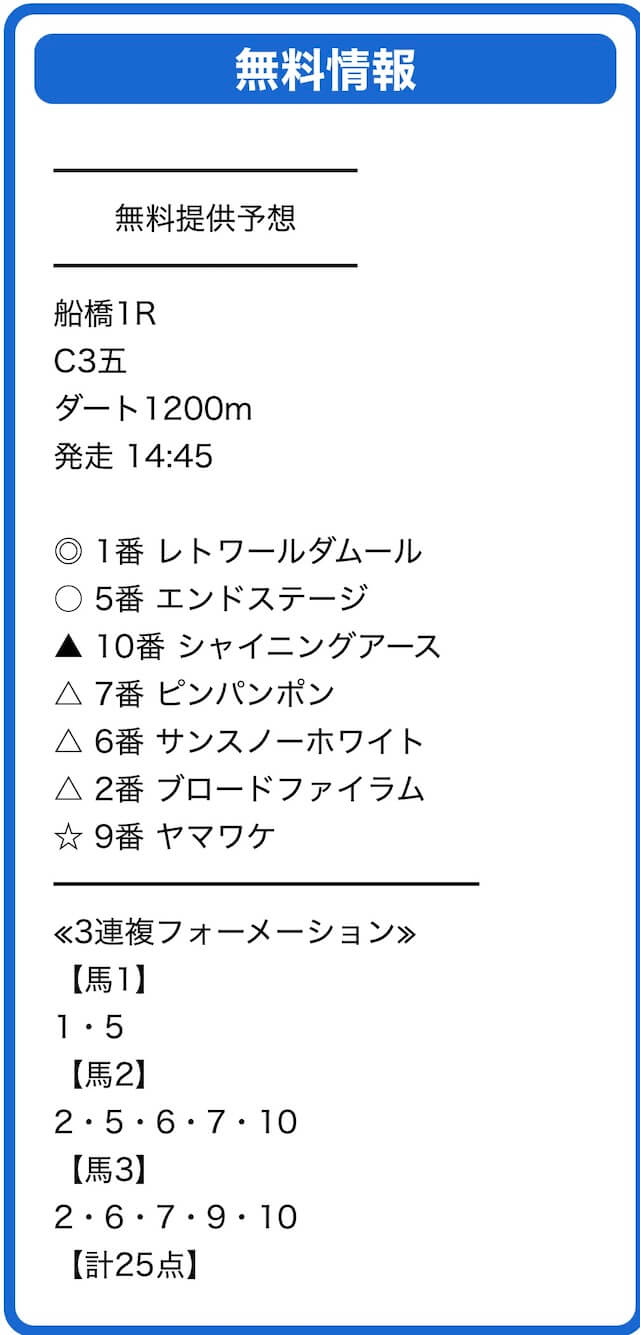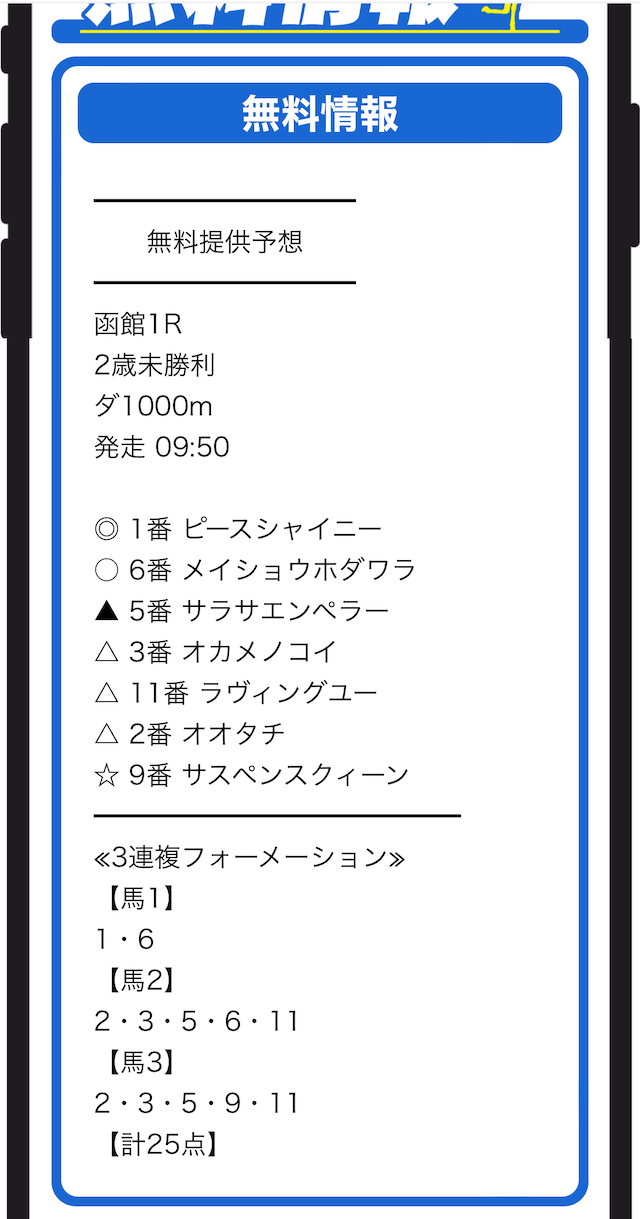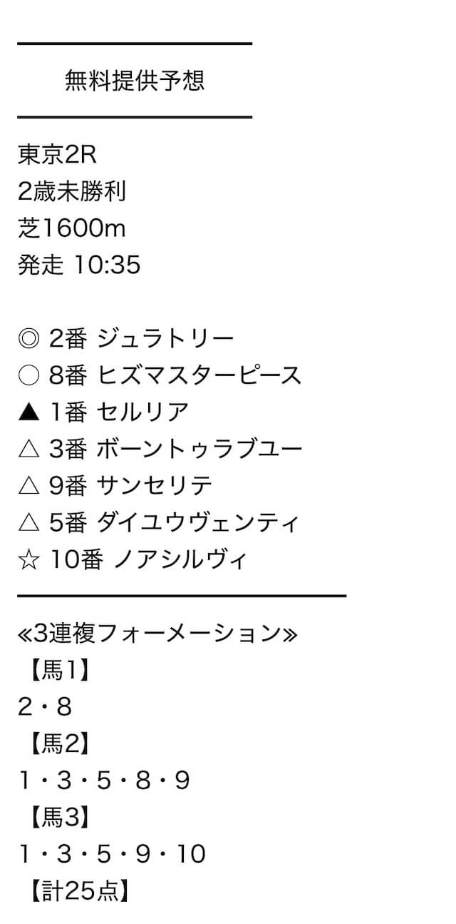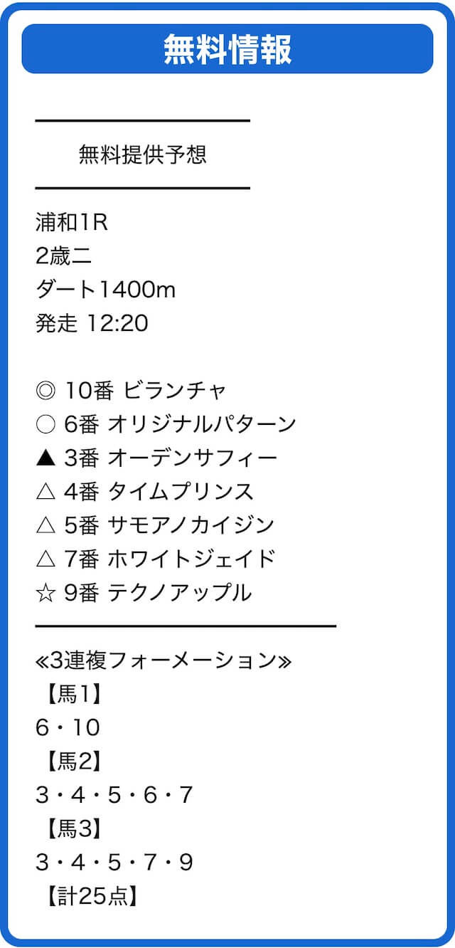 先週提供された2レースも的中したから実力もちゃんとあるね。