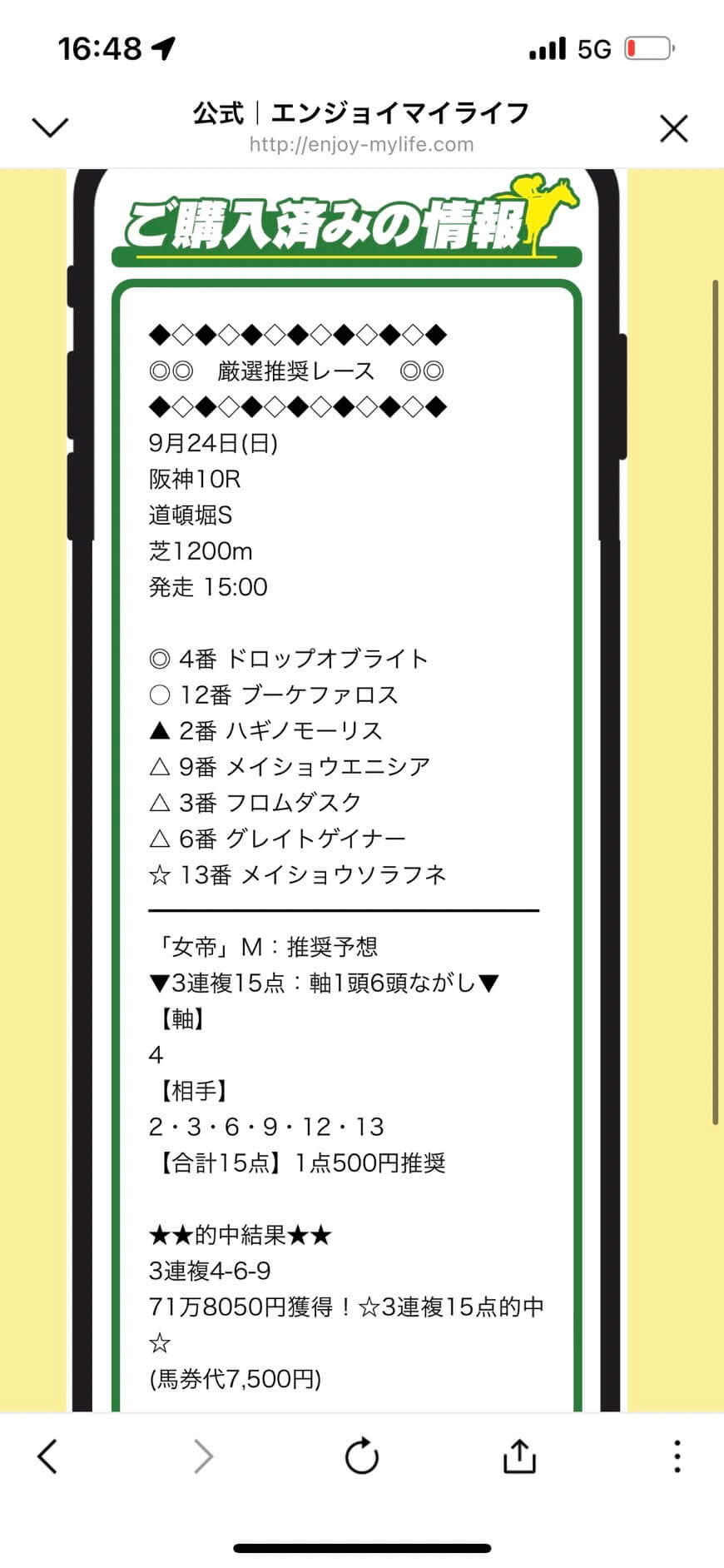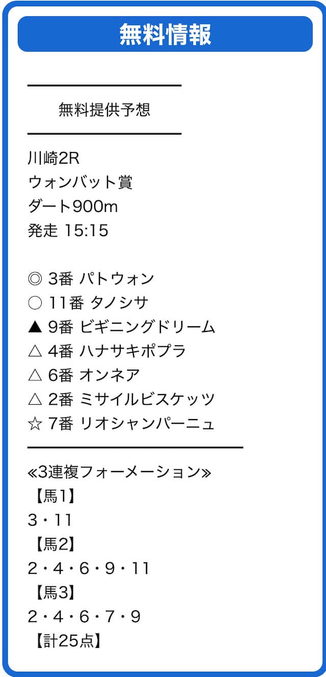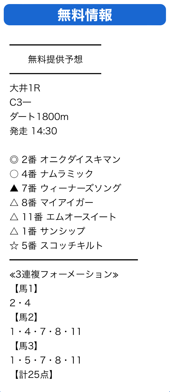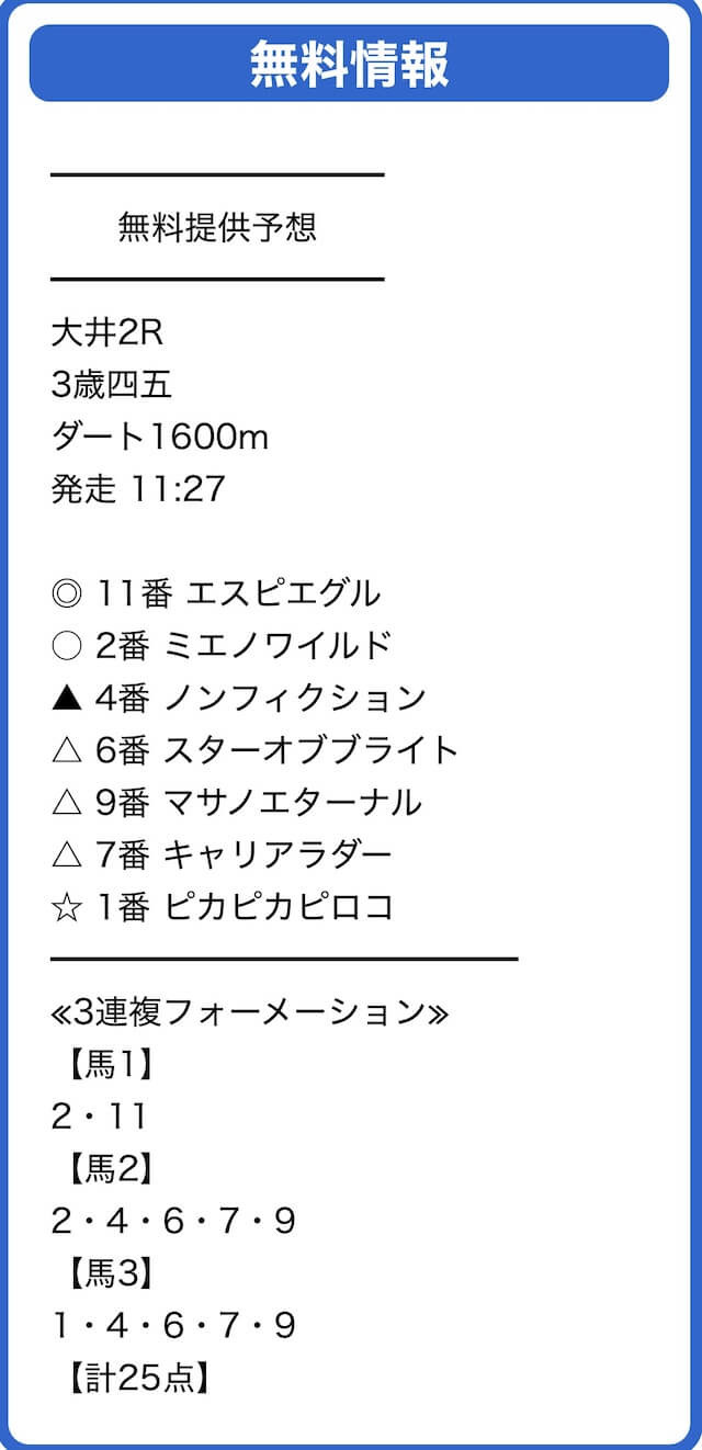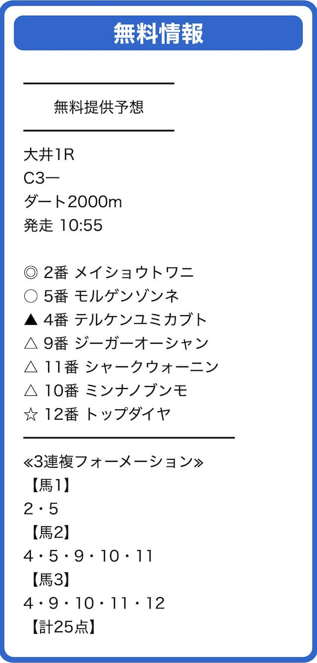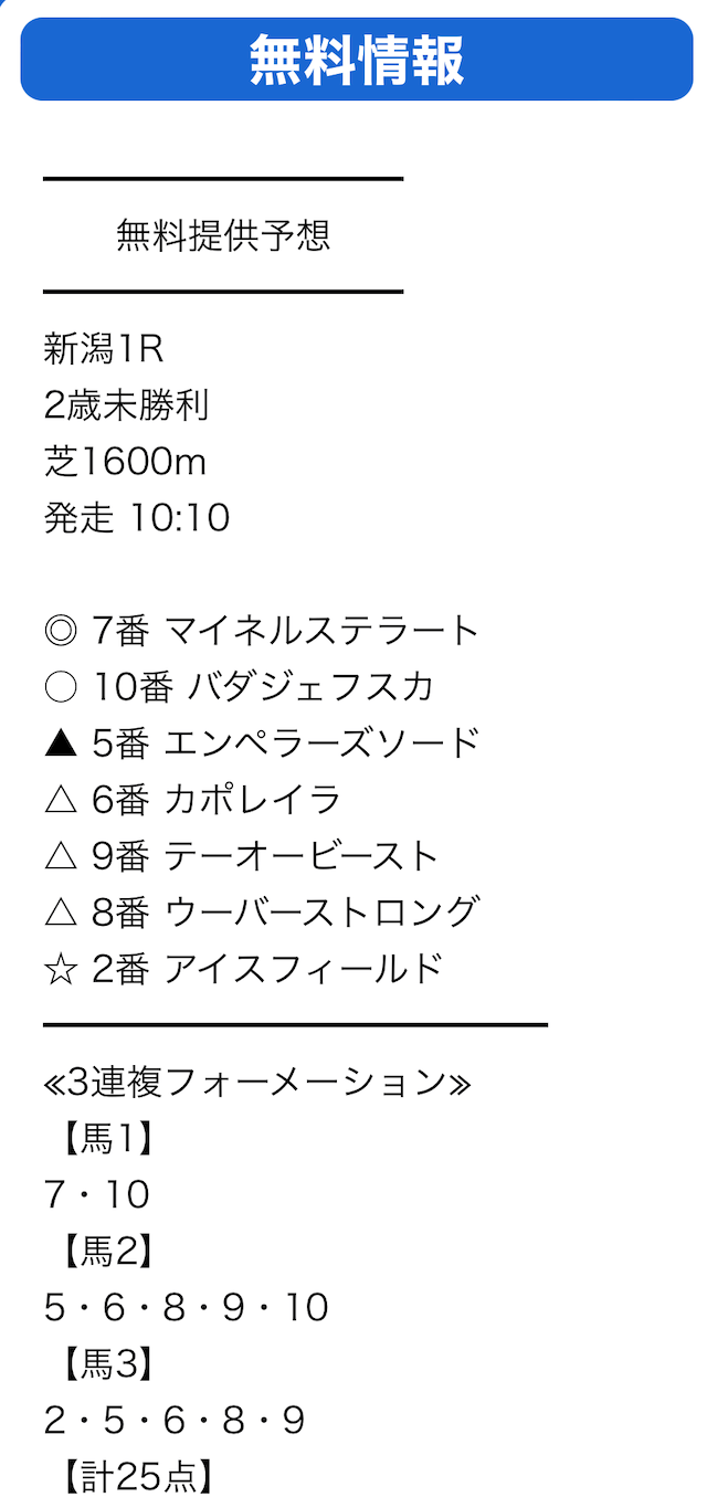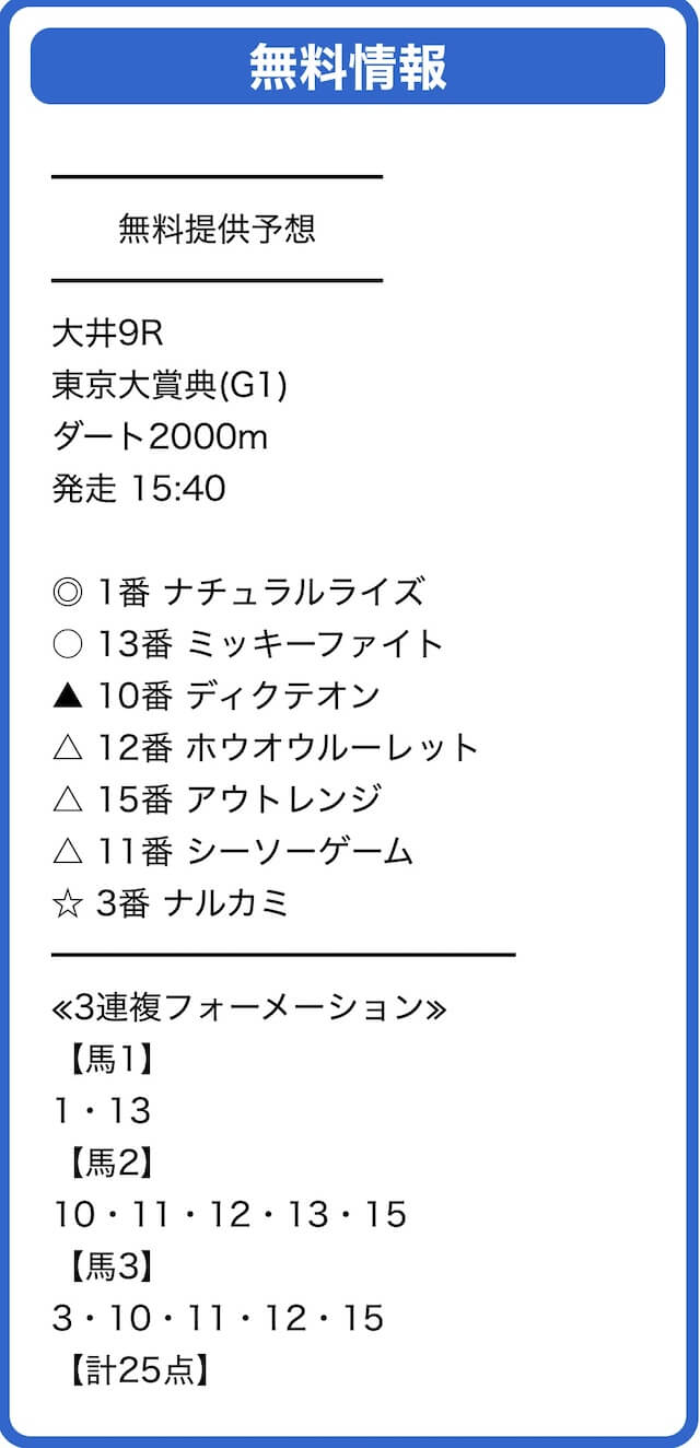 先週提供された2レースも的中したから実力もちゃんとあるね。