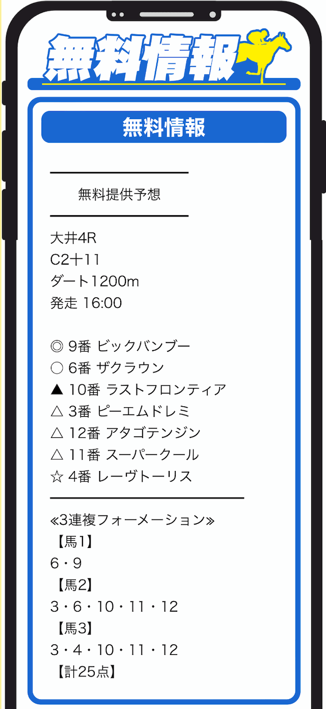 無料予想の的中率もすごいけど、LINEでこまめにレース情報を提供してくれるから見逃しが少なくて助かります。