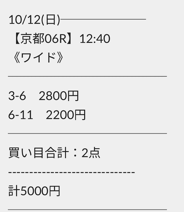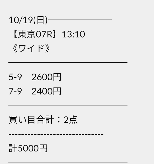 ワイドで点数も少ないから馬券代もそこまで掛からないし。