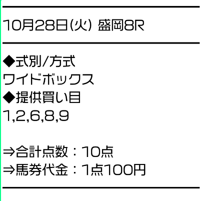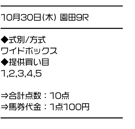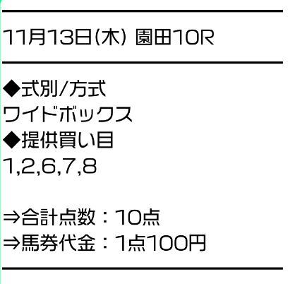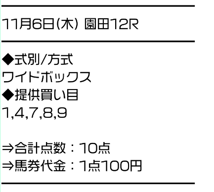 3位![]() | スーパー万馬券 | +678,600円 | 100% | 606% | ワイド・予想印 |