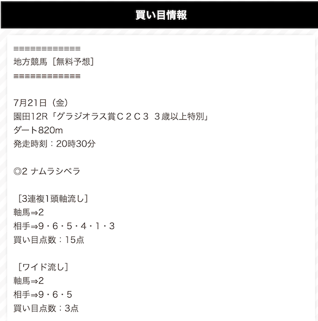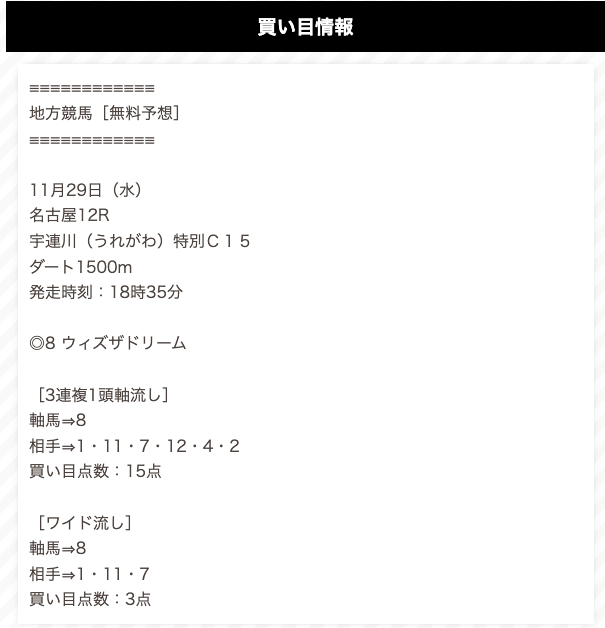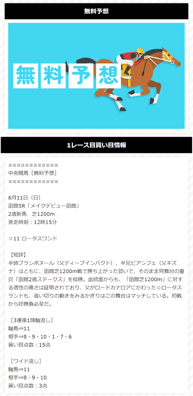 その分析結果を基にプロの馬券師が予想し、買い目を提供しているようです。
