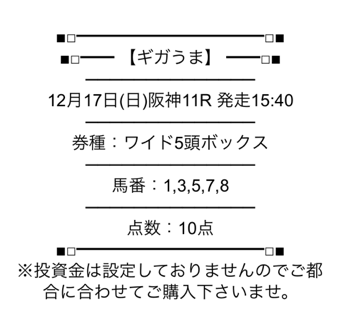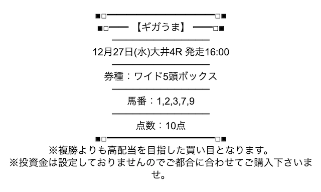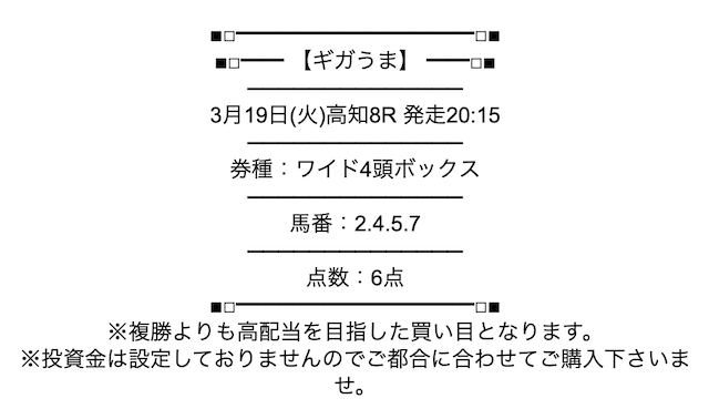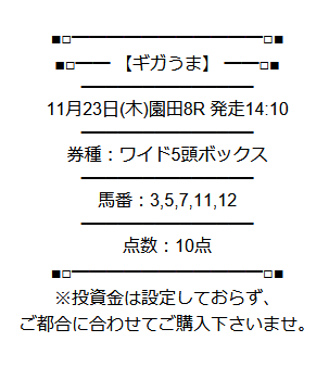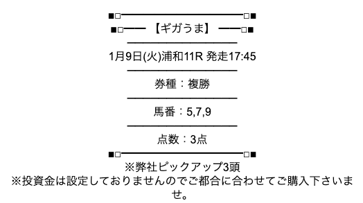ギガうまの無料情報は、対象のレースに合わせて券種が変動します。