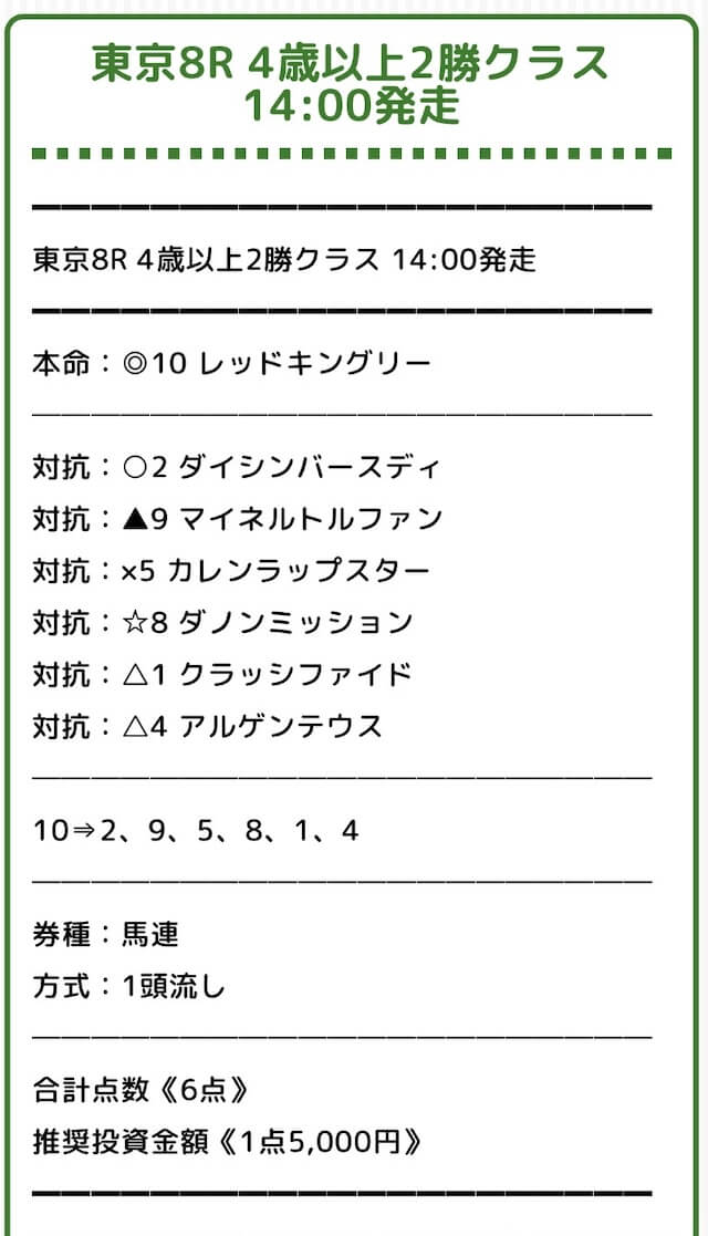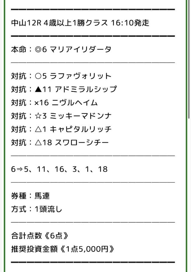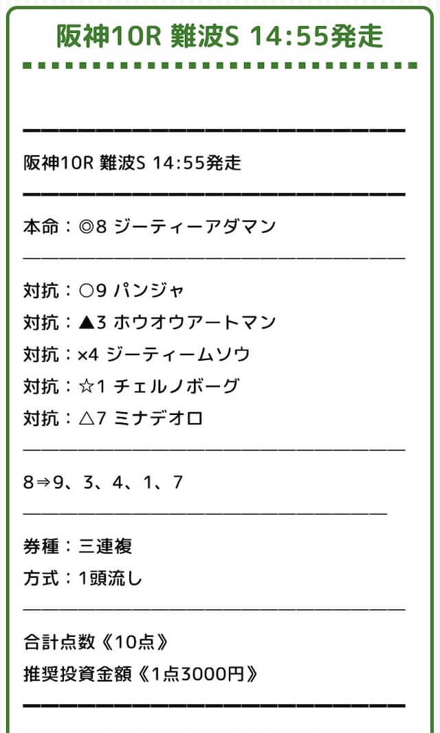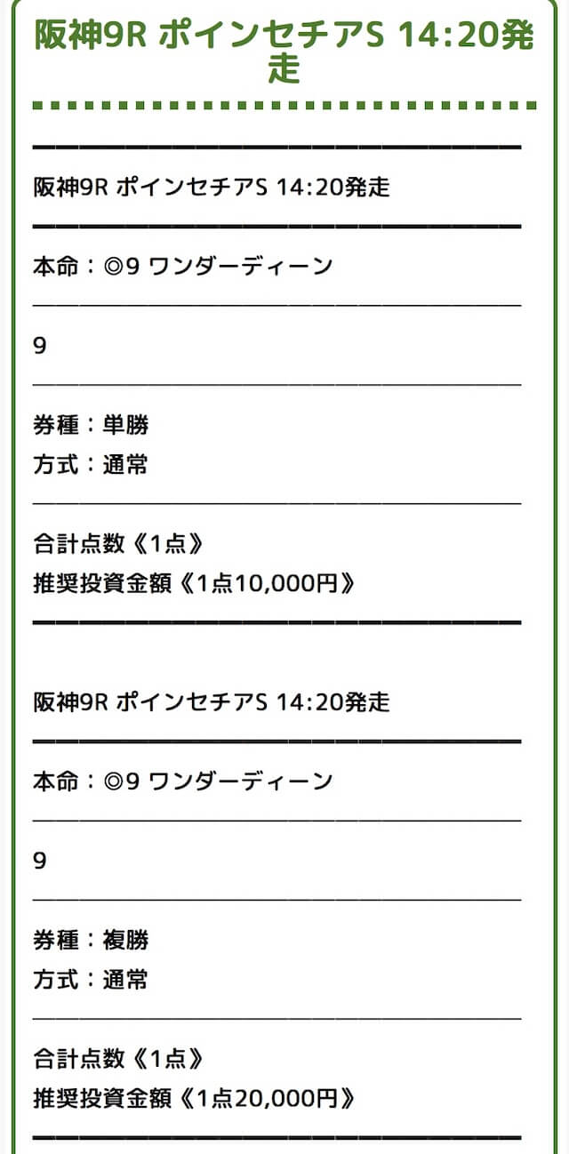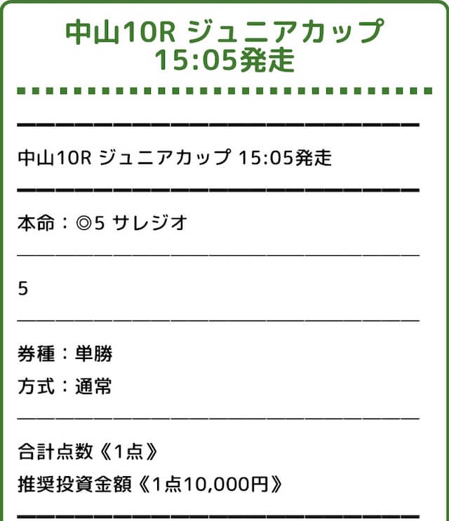 買い目の投資金額は、あくまで「みどりの的中らんど」が定める推奨の金額。