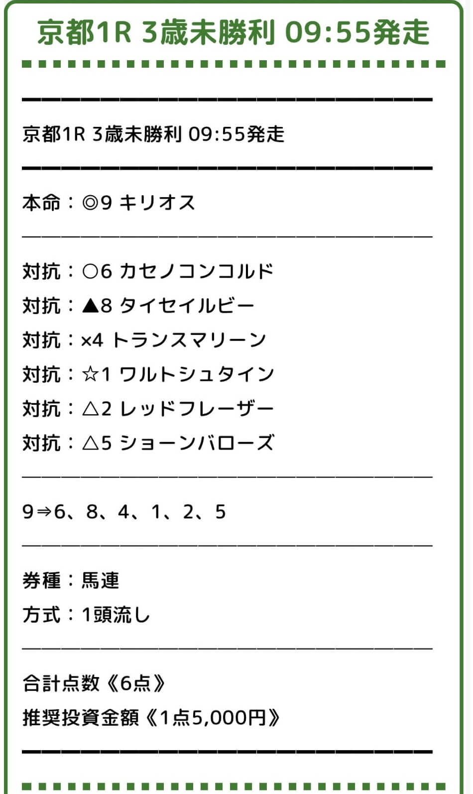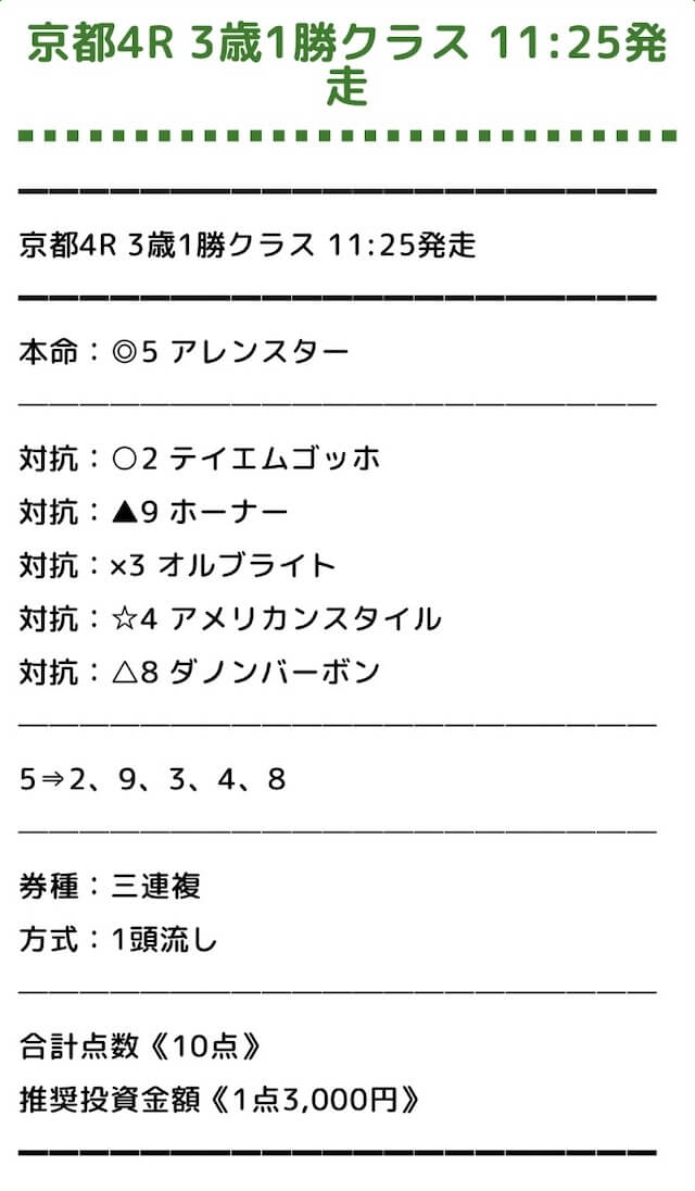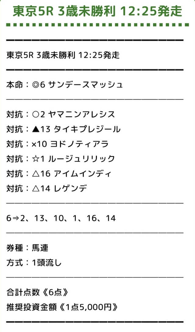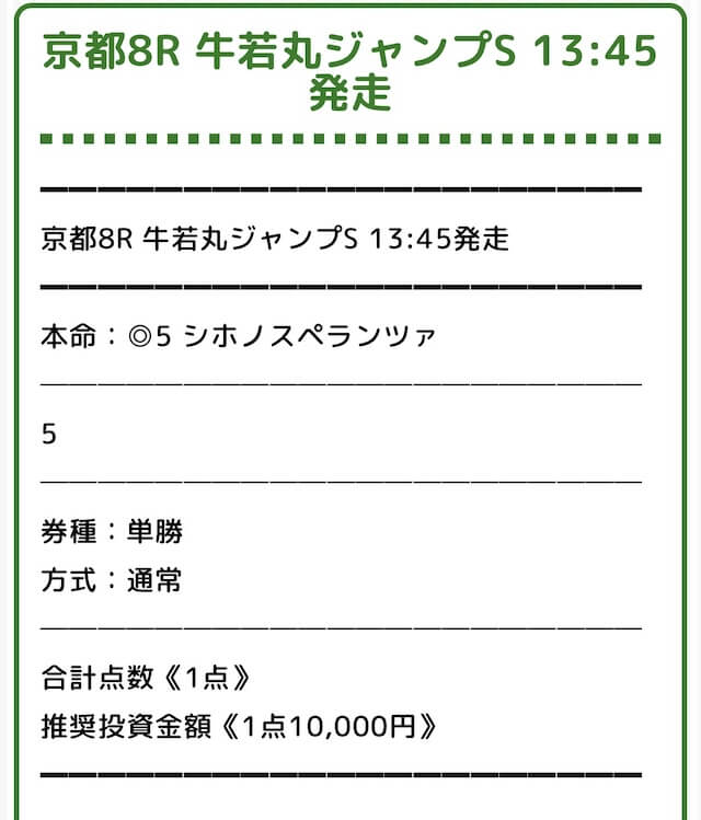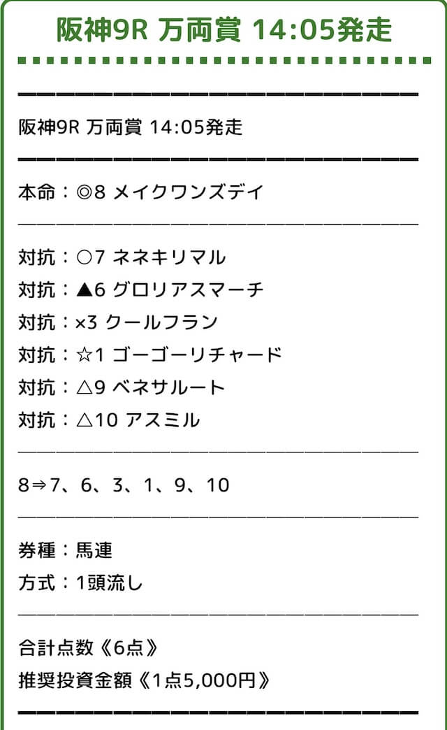 買い目の投資金額は、あくまで「みどりの的中らんど」が定める推奨の金額。