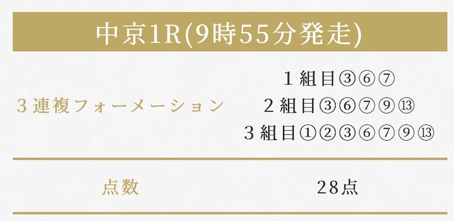 本来であれば、最低投資額の100円から初めて様子見すべきですが、競馬戦線の軍資金に余裕があるので、1点1,000円に統一して勝負。