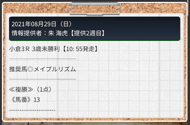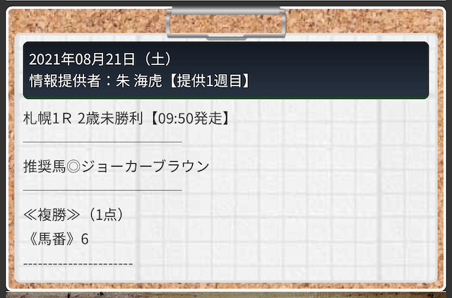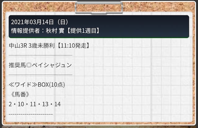確かに精度はいいかもねー。無料ワイドで舐めてたけど意外といい当たりだしたしなー。提供のおっさんによって3連複提供の時もあるのね。