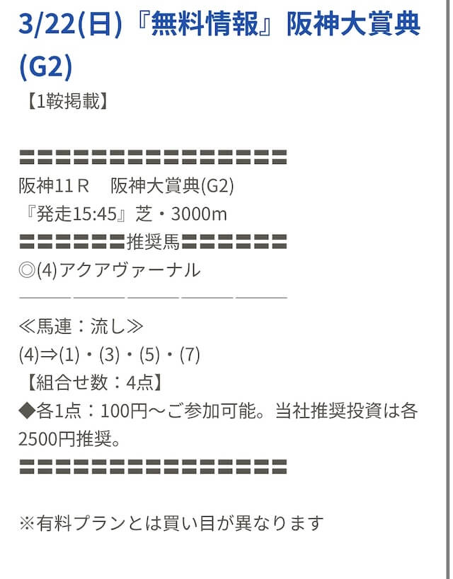 そして、私が実際に使って感じた無料予想と有料予想で大きな差は、軸馬の選び方について。