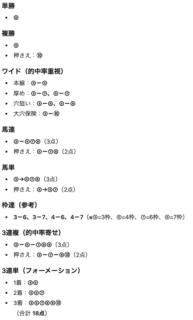 今回は当てに行く買い目が公開されたので、おそらく的中重視の買い目。
