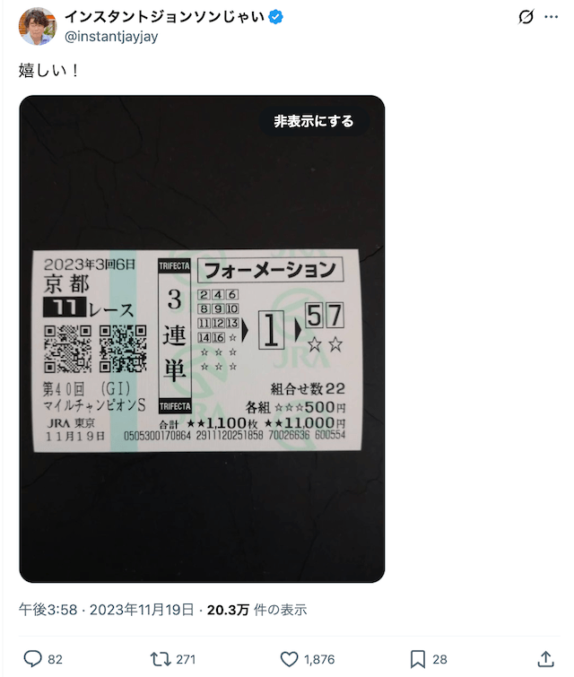 この買い方は、点数を抑えつつ堅い決着から大荒れの展開までカバーできる万能なフォーメーションなので、ぜひ試してみてください!