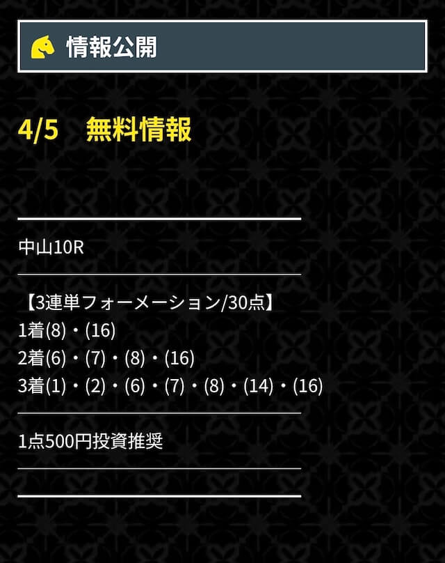 そのため、無料予想で当てて有料予想に臨む・・・という手順を踏めば、実質無料で勝負可能。