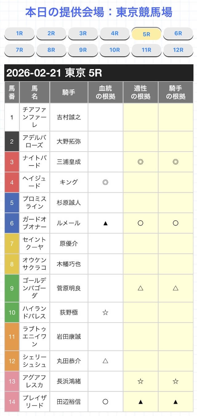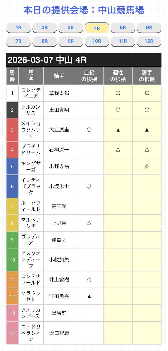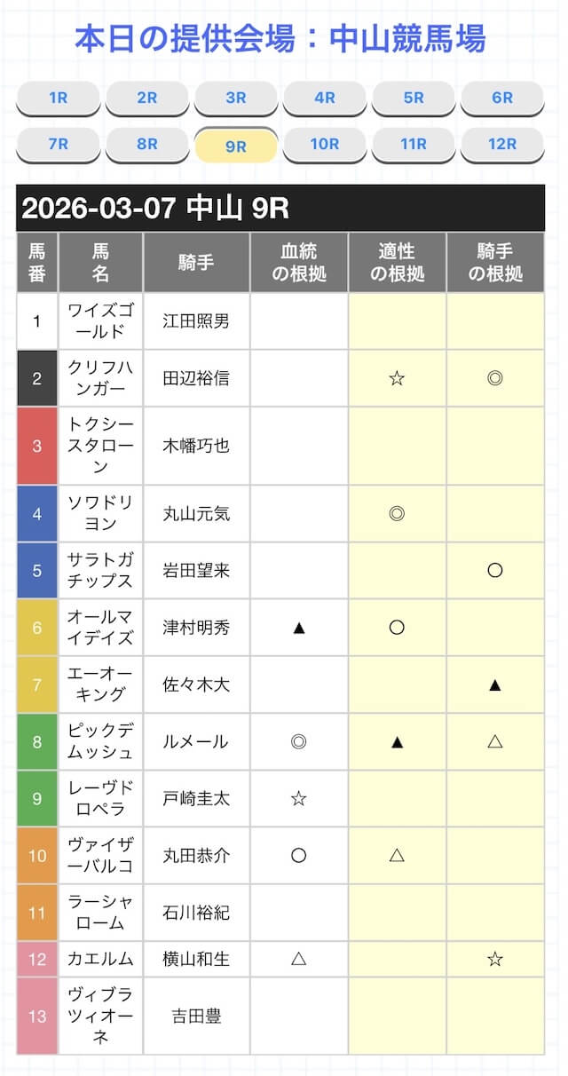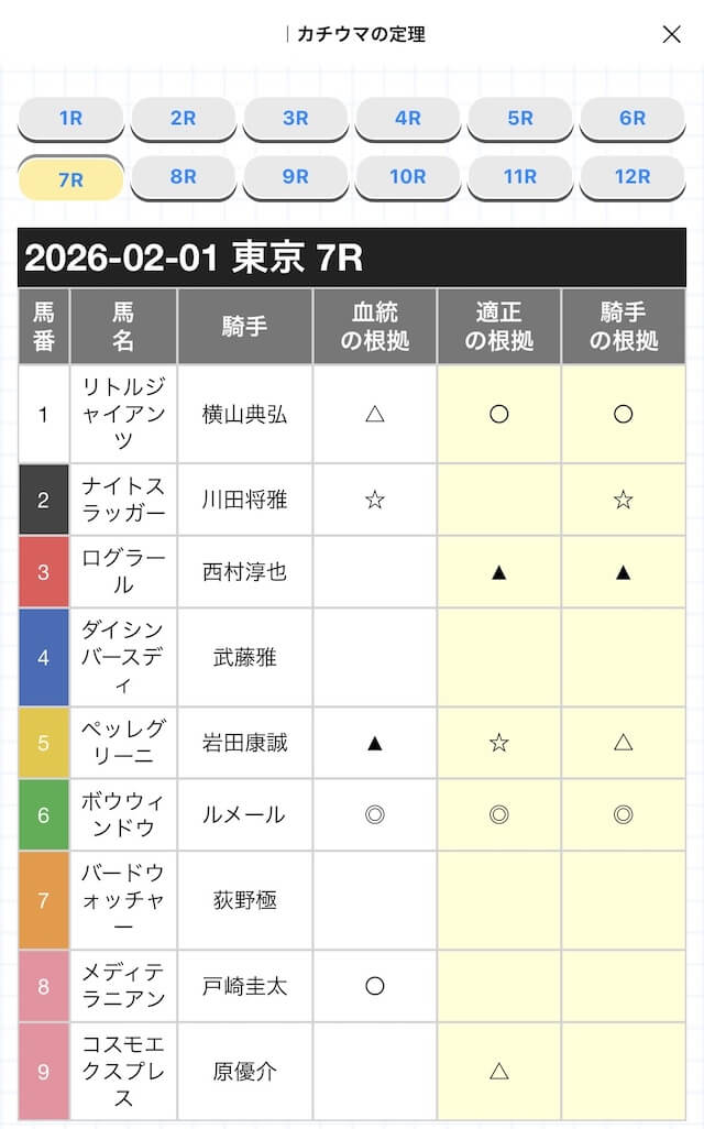 ただしカチウマの定理は、一般的な「買い目提示型」と違い、予想は印(指数)のみ公開です。