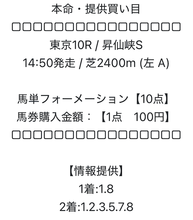 投資競馬は1点1,000円の合計10,000円で勝負します。