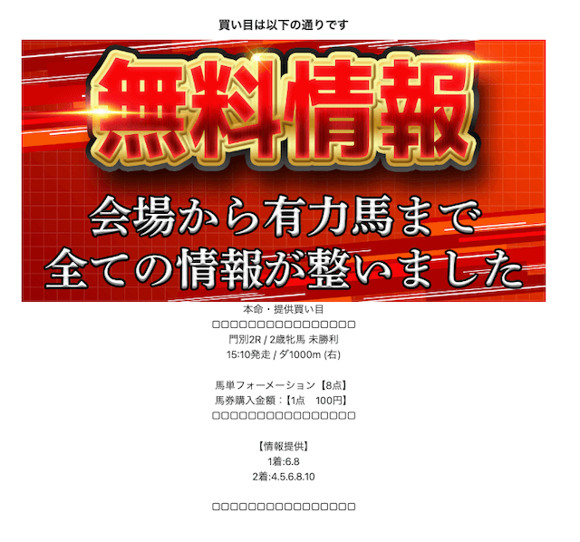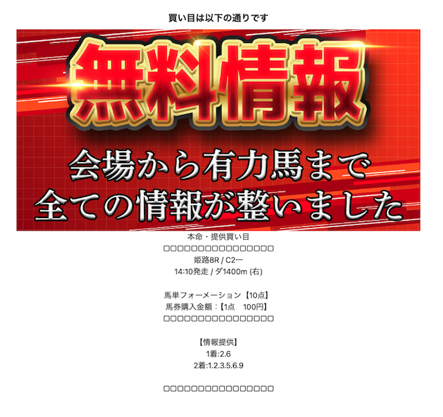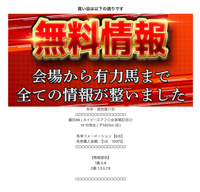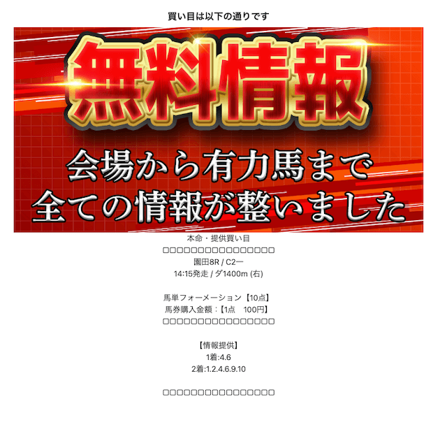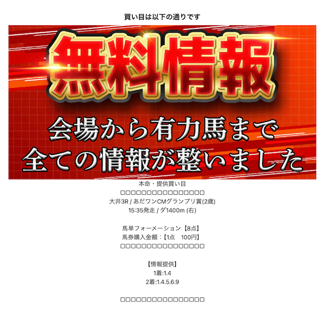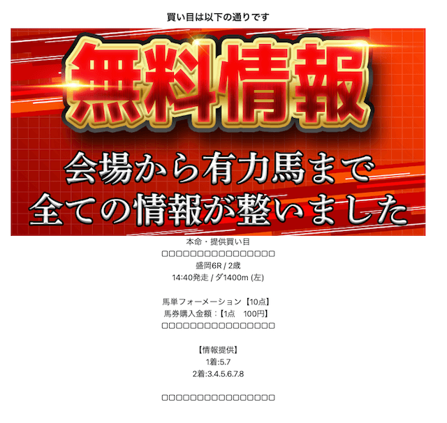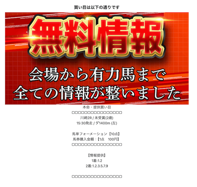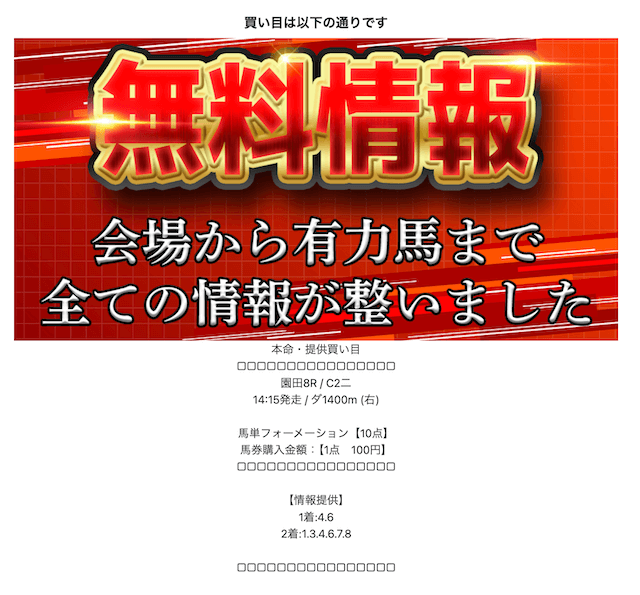 慎重な方はまず無料で予想をチェックしましょう!実際のレースの結果を照らし合わせて実力を確かめてみてください!