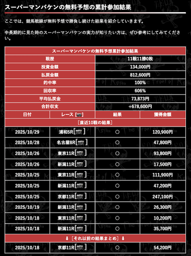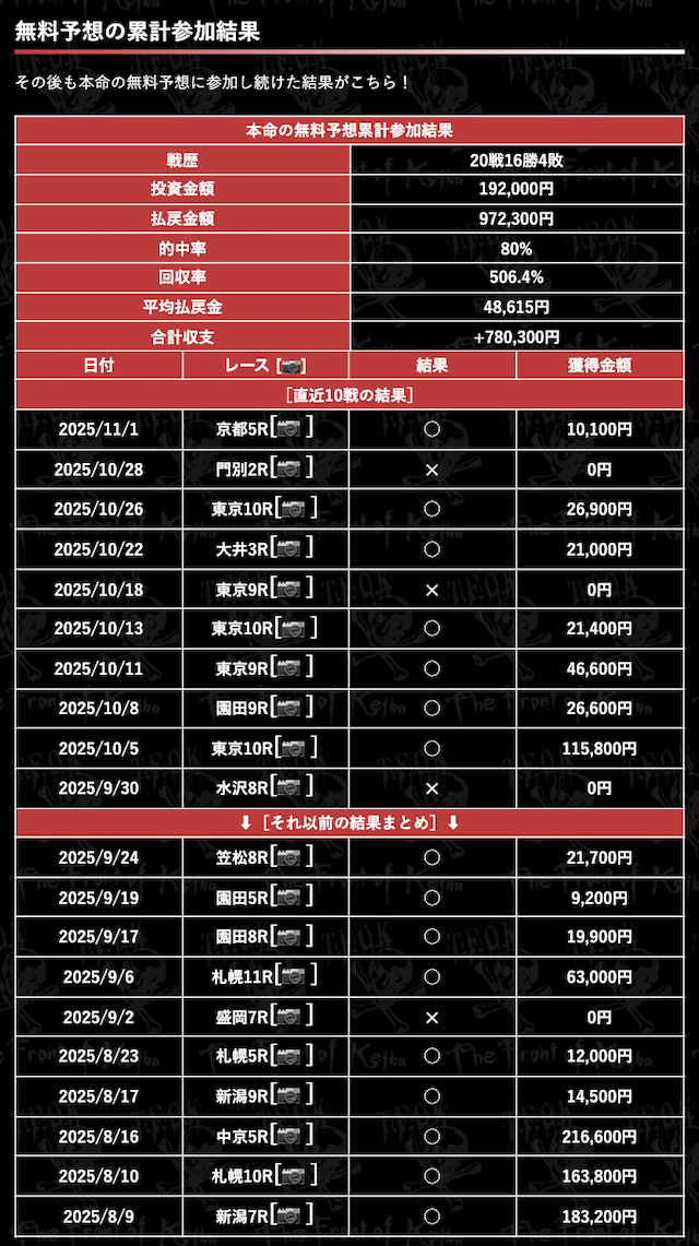 負けた人の言い分もサイト内で見かけたので実績も本当の的中や当たらないプランは実績が乗らないようですね、また2回しか利用してませんが2回とも的中はしてます。