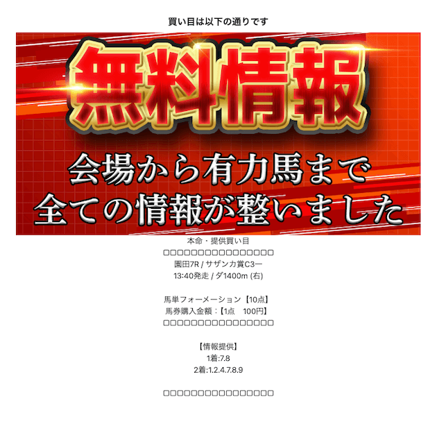 厳選された予想の「最前線」をぜひこの機会にお試し下さい。