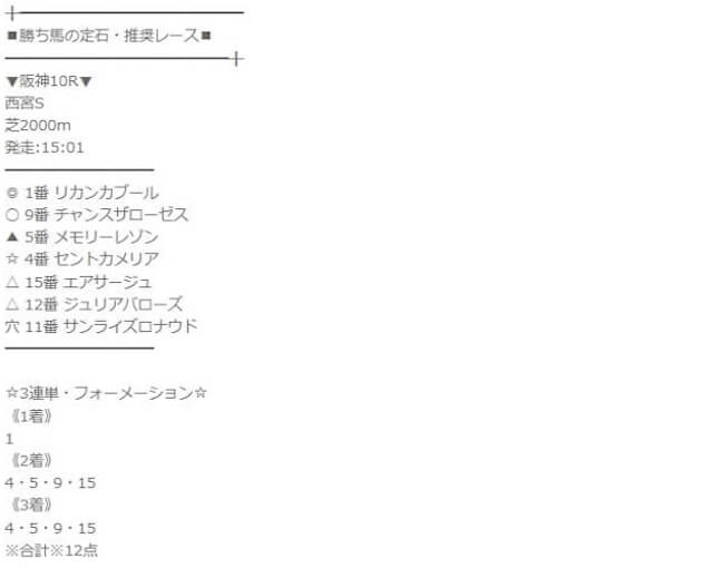 来週のメインレースも勝ち馬の定石の無料予想で勝負する。